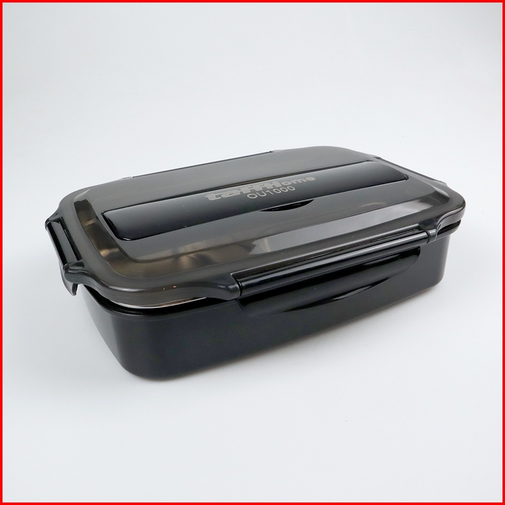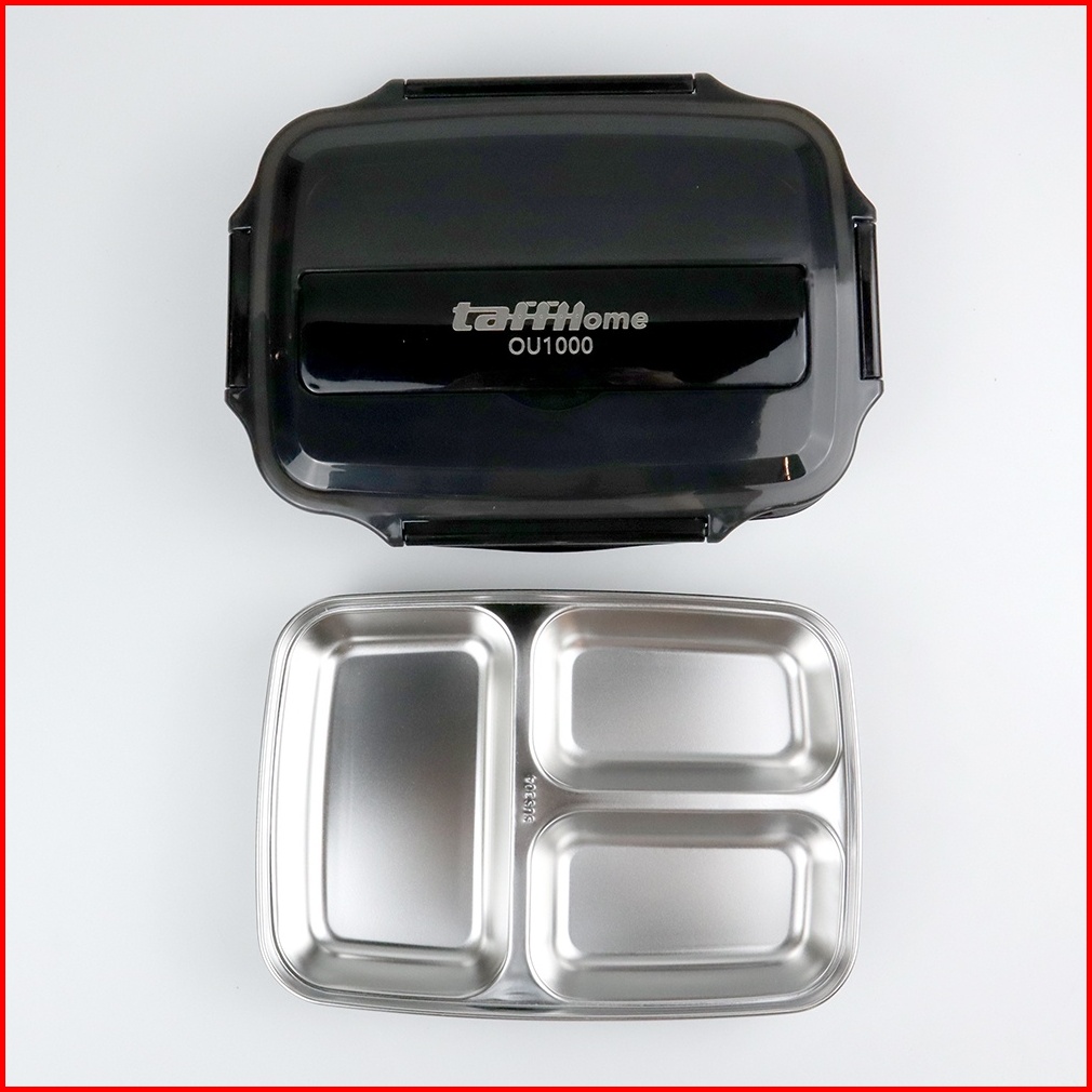 Kotak Makan Lunch Box Stainless Steel 3 Grid 1l - Ou1000 - Black Sthz01bk