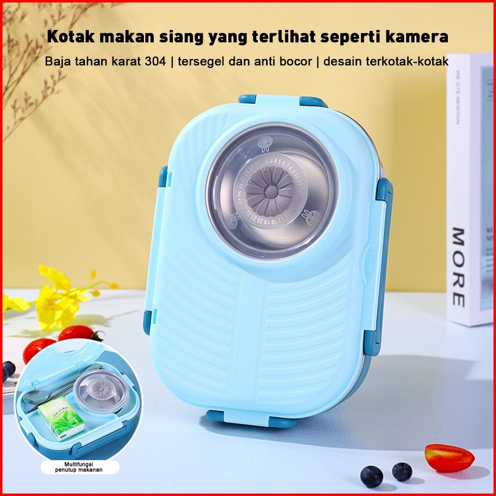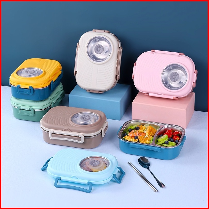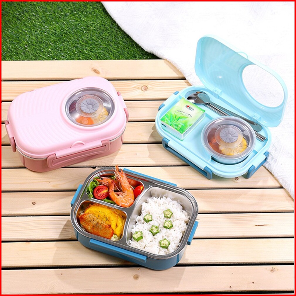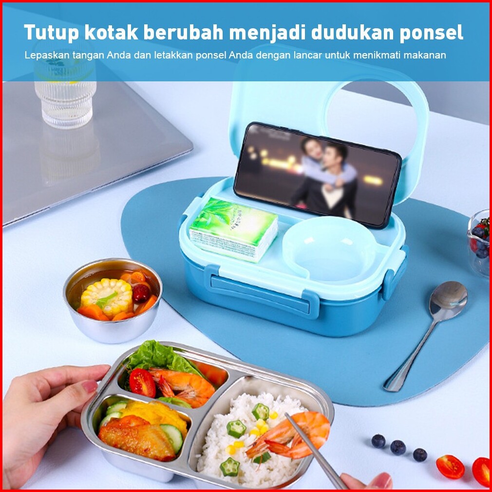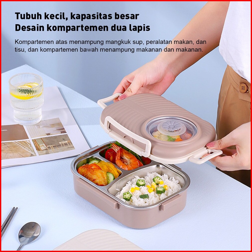 Tempat Kotak Makan Anak Dewasa 3 Grid Bento Lunch Box Stainless Steel 1000ml Mangkuk Sup