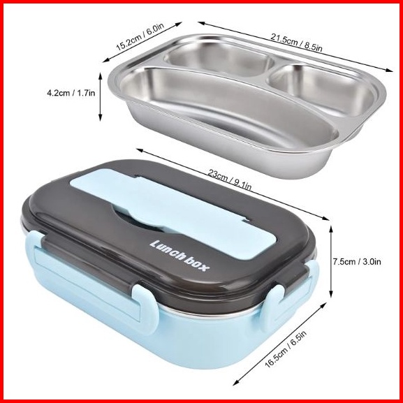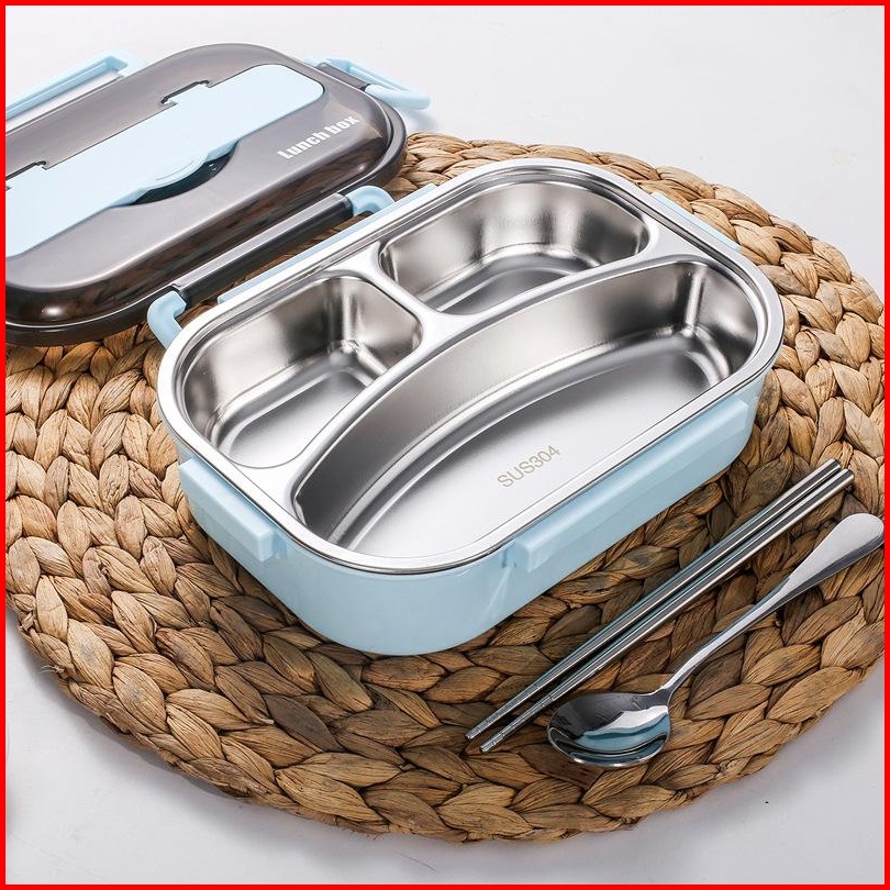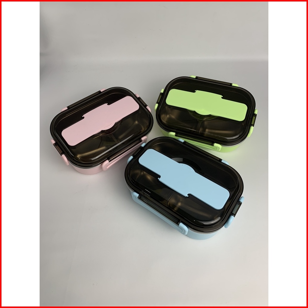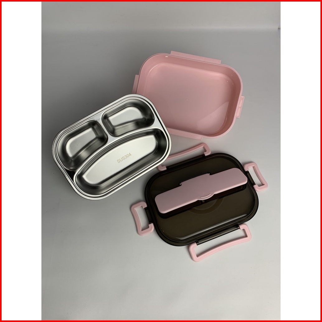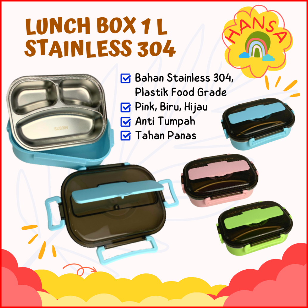 1 Liter Lunch Box Kotak Makan Stainless Steel 304 - Kapasitas 1 Liter 3 Sekat Tahan Panas Persegi