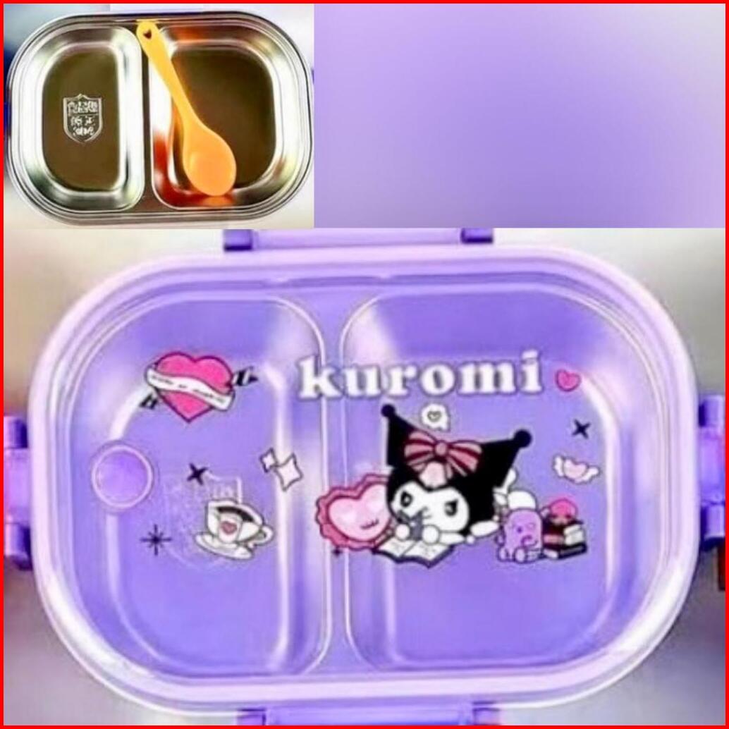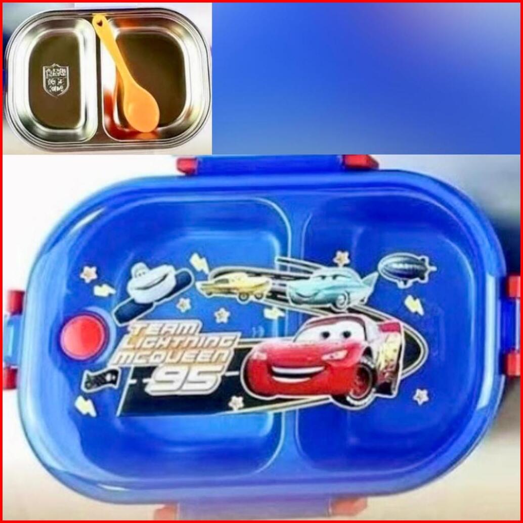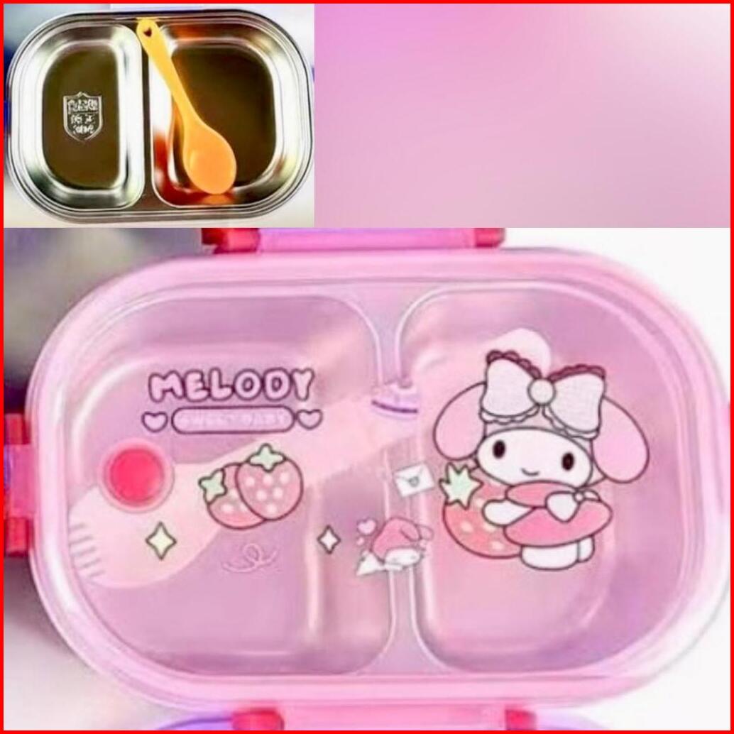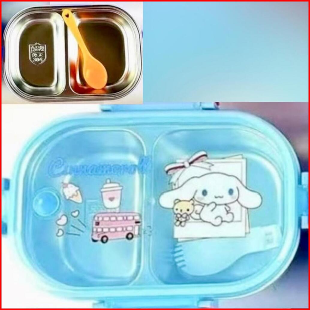 Kotak Makan 2 Sekat Karakter Stainless Steel 304 Kotak Makan Karakter Anti Tumpah Kotak Makan Anak Sekolah Kotak Makan A