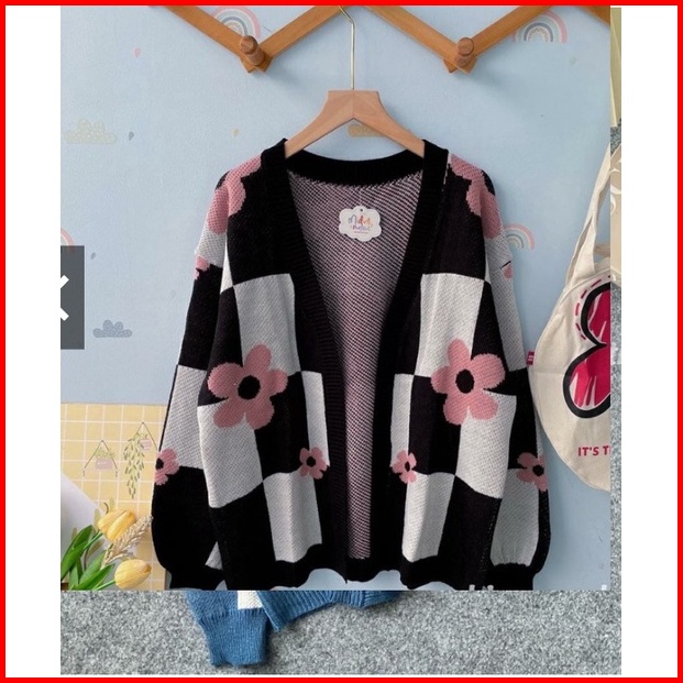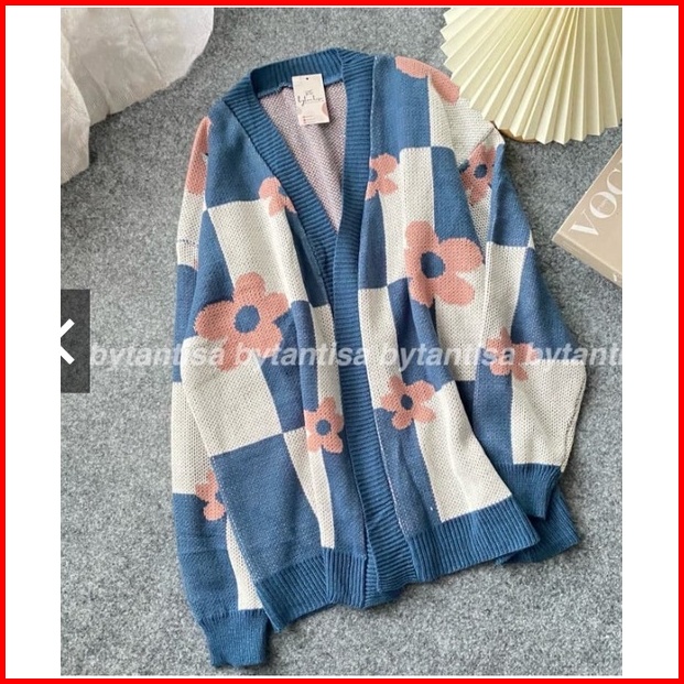 Cardigan Rajut Motif Bunga Aero Bahan Lembut Motif Cantik