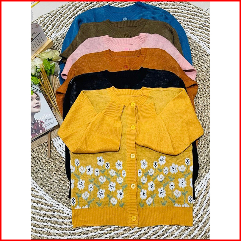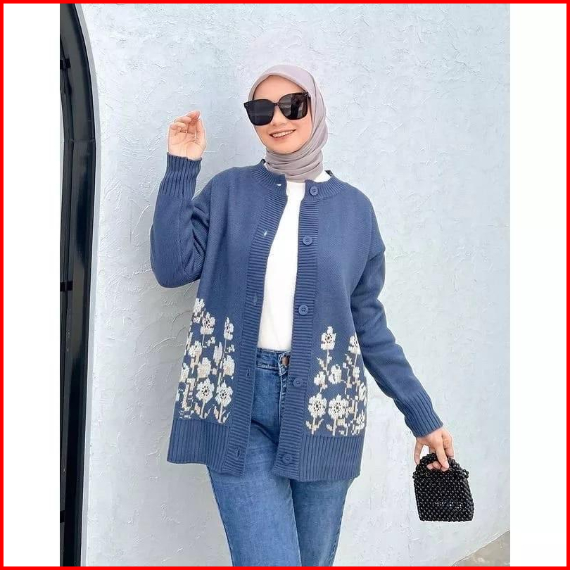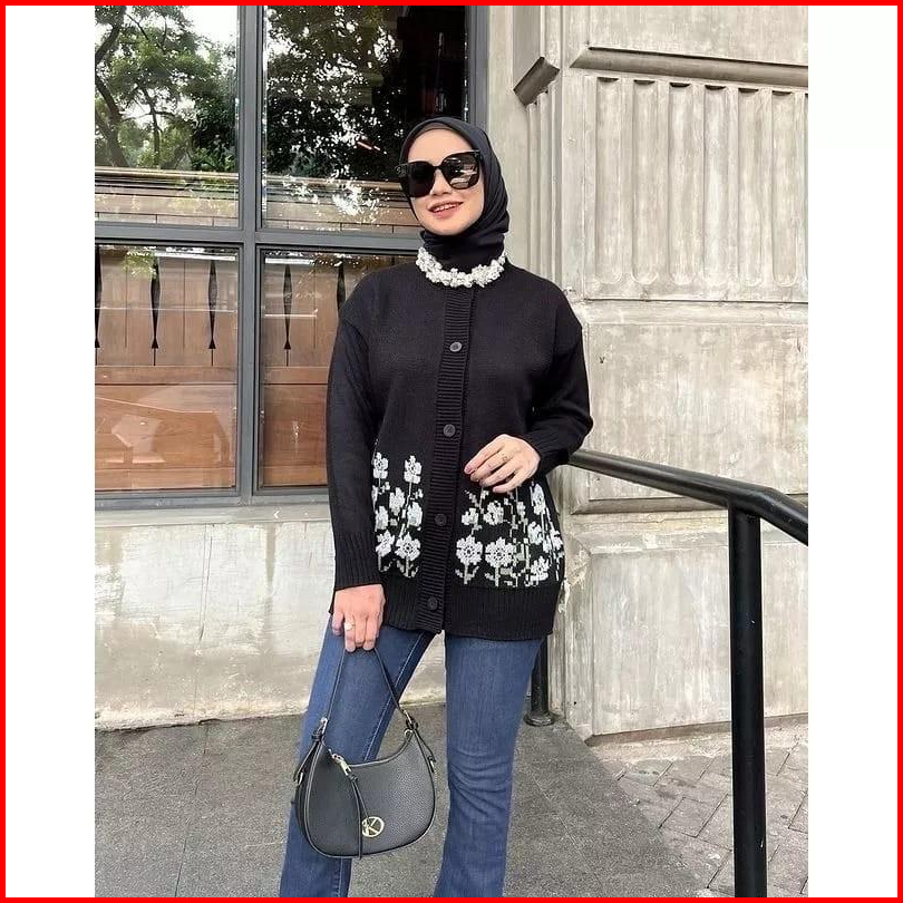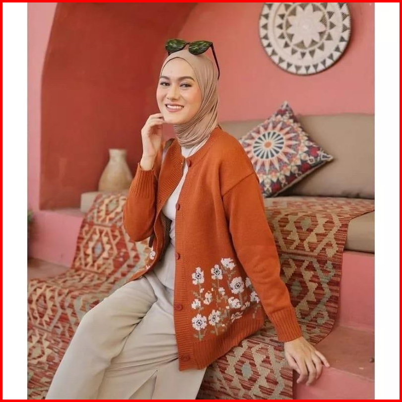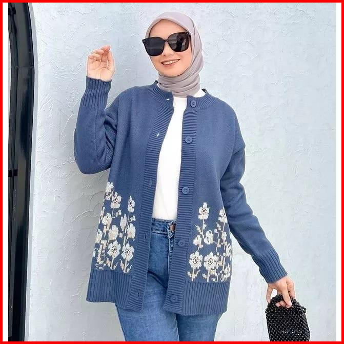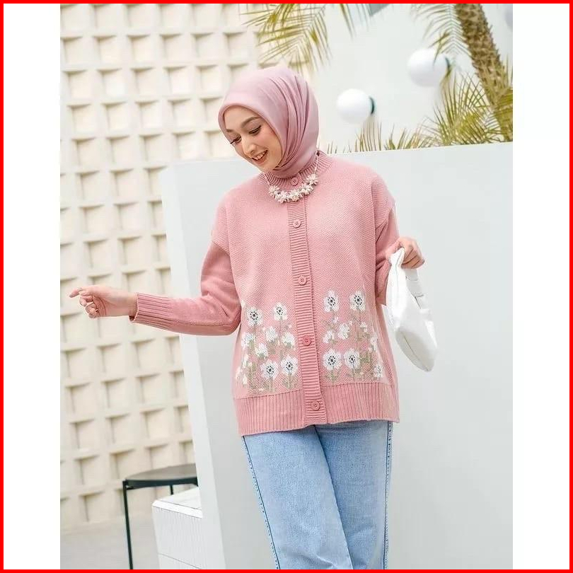 Sachi Knite Cardigan Rajut Flower Premium Wanita