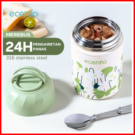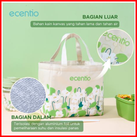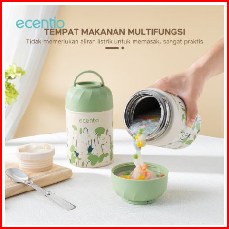 Ecentio Koleksi Green Whispers Tempat Makan Tas Bekal Food Jar Termos Nasi Tumbler Gelas Stainless