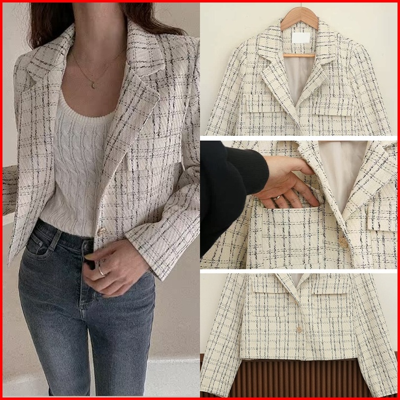 Jaket Mantel Kerah Pendek Wanita Kardigan Crop Lengan Panjang Jaket Wanita Crop Terbaru Lengan Panjang Jacket Korean Sty