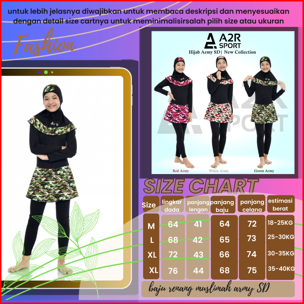 A2r Sport - Muslim Army Sd Baju Renang Anak Perempuan