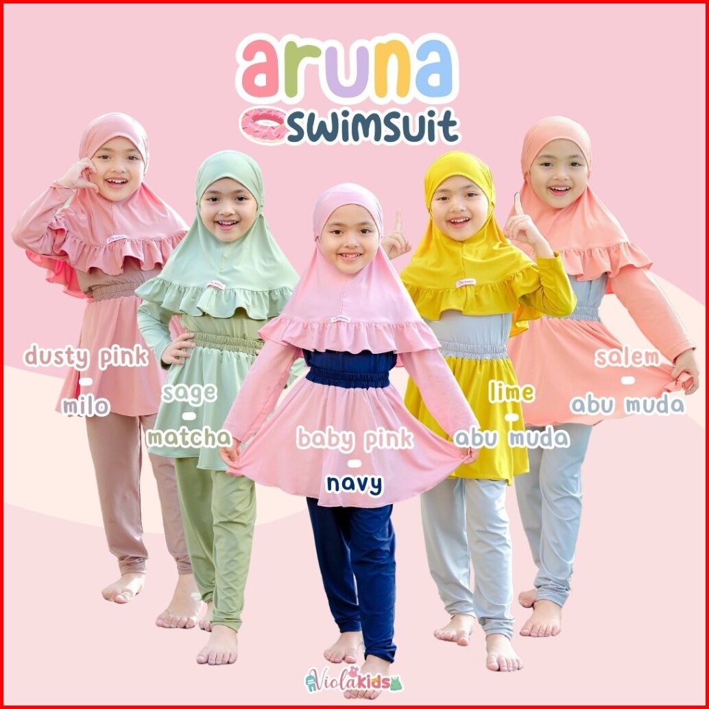 Baju Renang Anak Perempuan Set Hijab Aruna Swimsuit Pakaian Renang Anak Baju Diving Muslimah