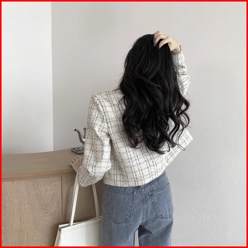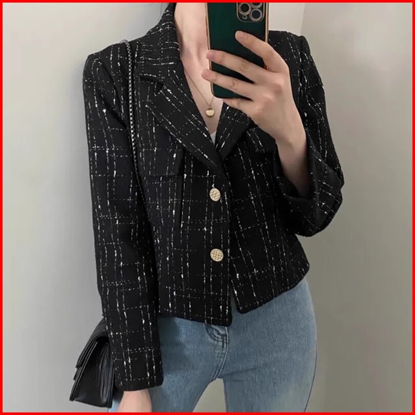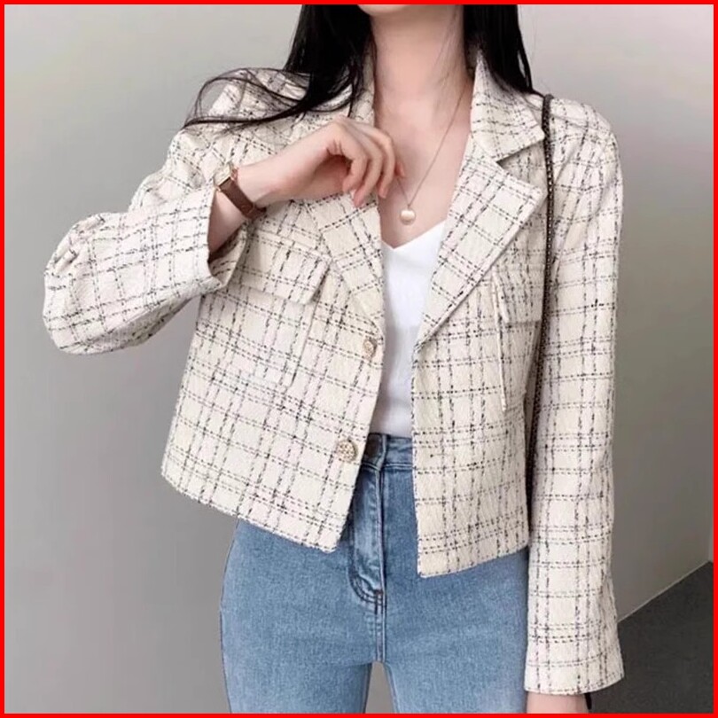 Jacket Wanita Terbaru Vintage Lengan Panjang Kotak-kotak Kardigan Crop Korean Style Kekinian Import Baju Atasan Wanita P
