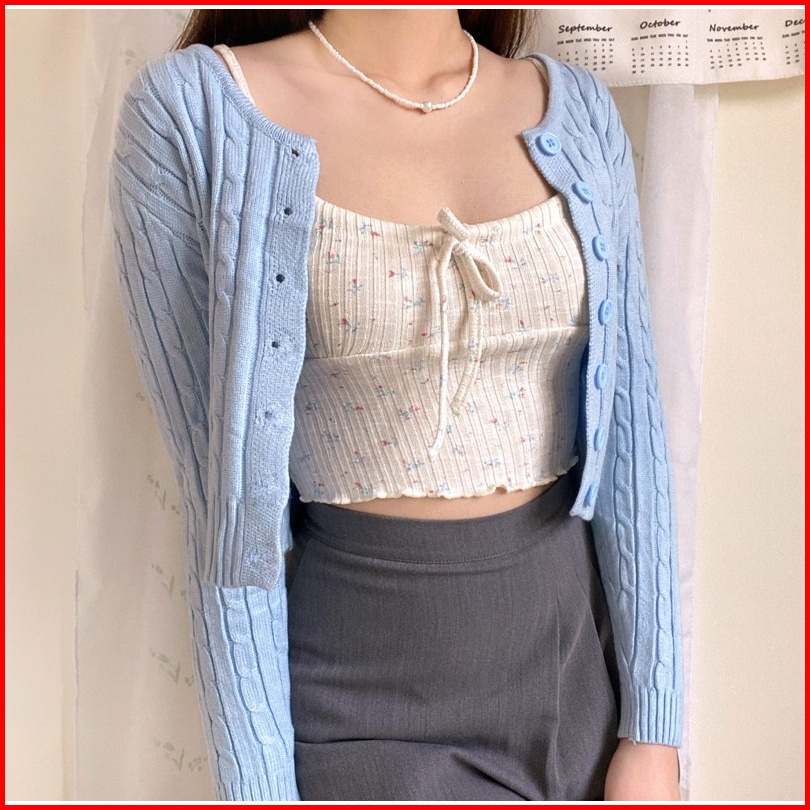 Elle Cropped Cardigan Ready Cardi Rajut Lengan Panjang Luaran Wanita Korea Polos -premium Cable Knit
