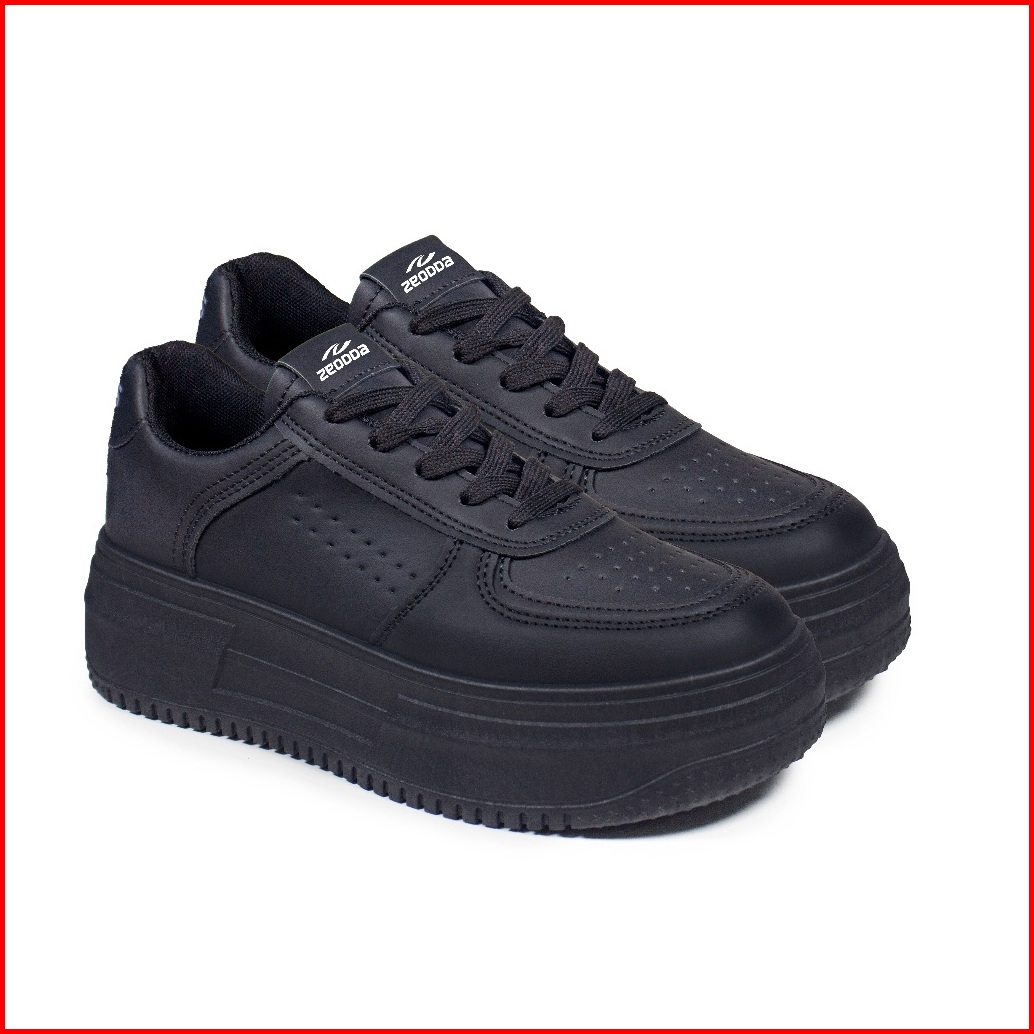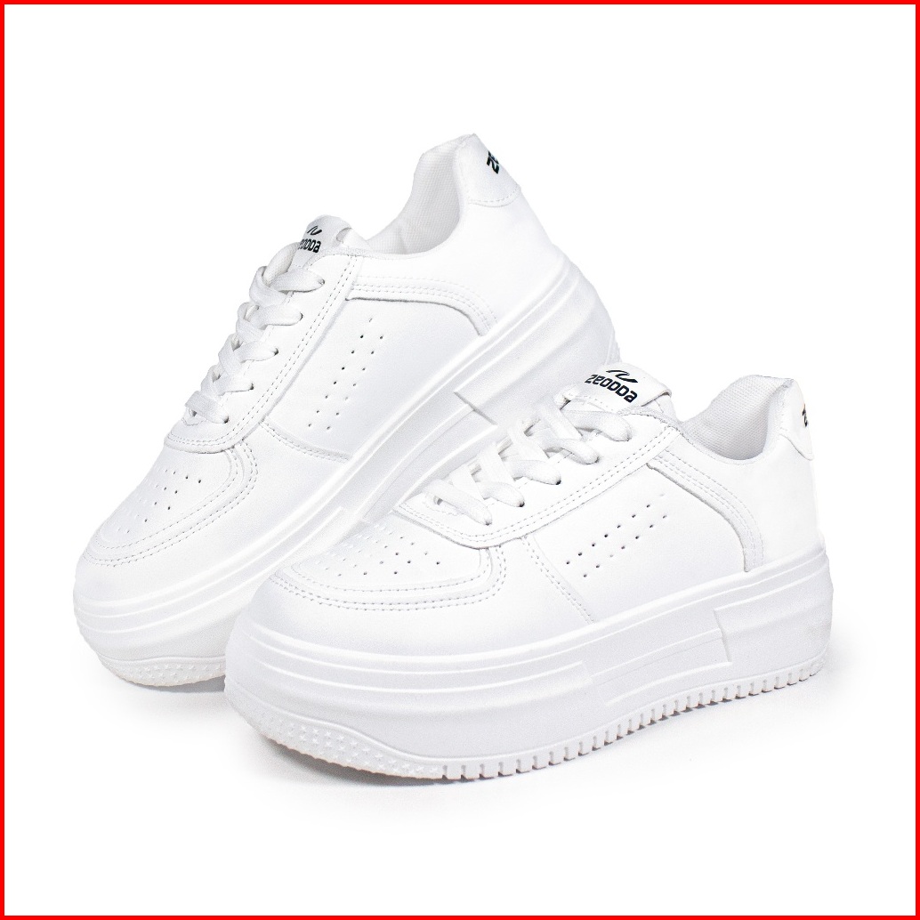 Zeodda Kara Sneakers Wanita Casual Putih Polos Premium Sepatu Kets Cewe Korea Style Sekolah Hitam Kulit Sintetis Empuk R