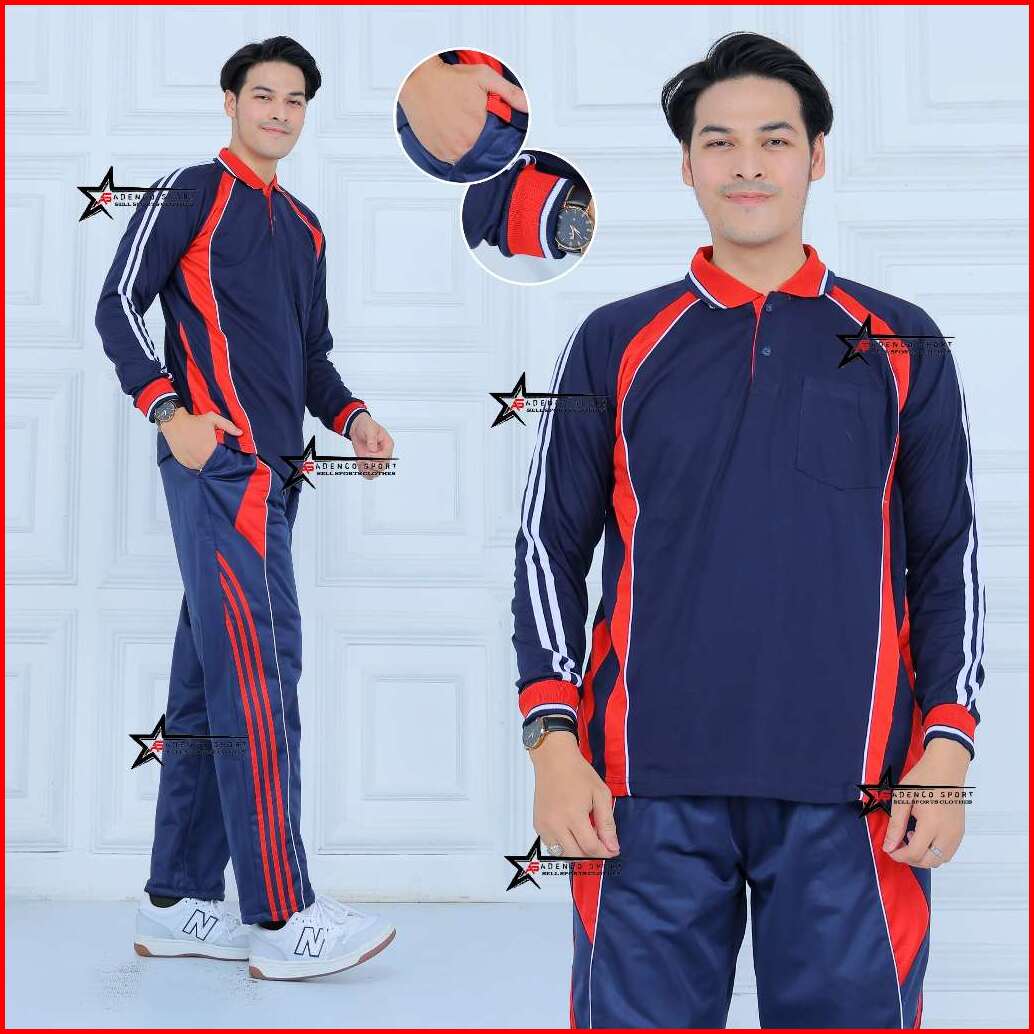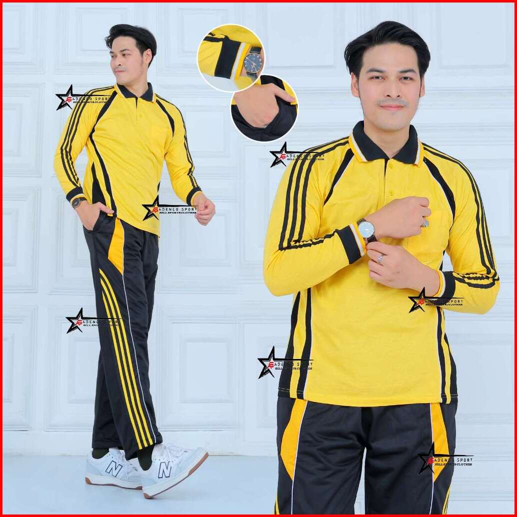 Baju Olagraga Pria 1 Set Lengan Panjang Pakai Kantong Saku Setelan Baju Olahraga Seragam Baju Senam Pria Dan Wanita