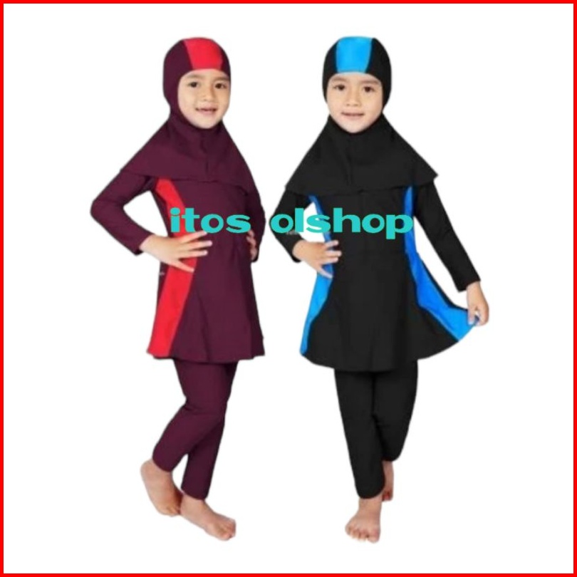Baju Renang Anak Perempuan Muslimah Polos 4-6 Tahun