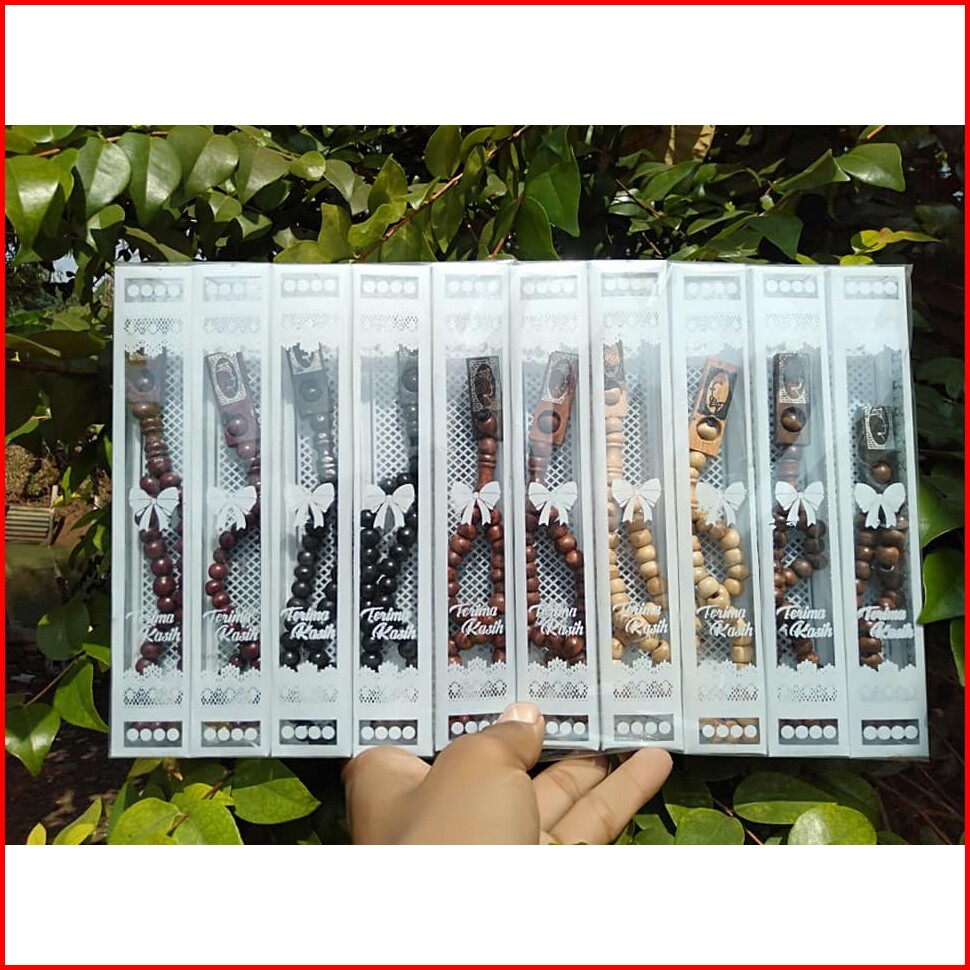 Sovenir Pernikahan Tasbih Kayu Kemasan Mika Motif Isi 50 Bonus Kartu Ucapan Terima Kasih