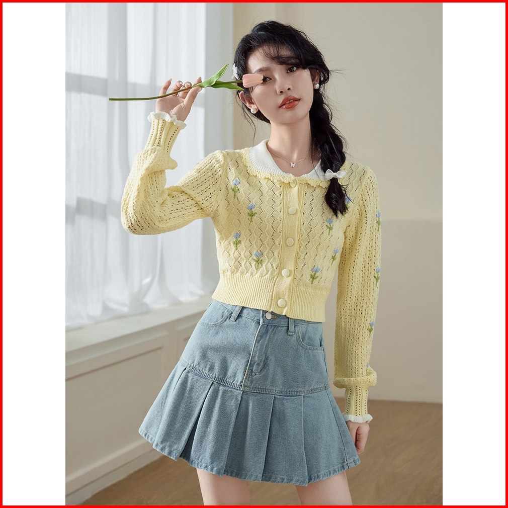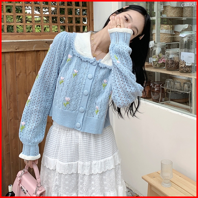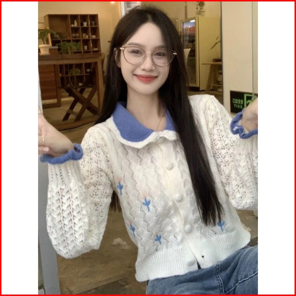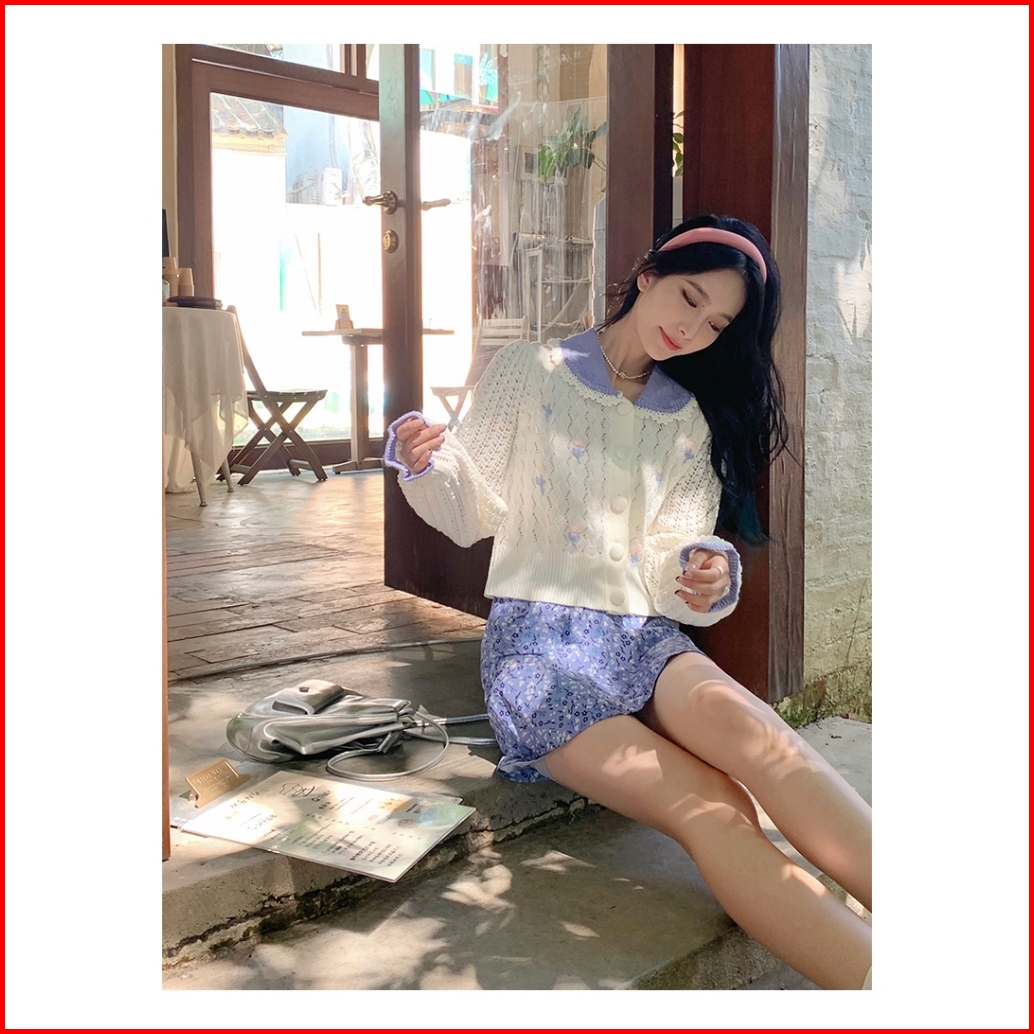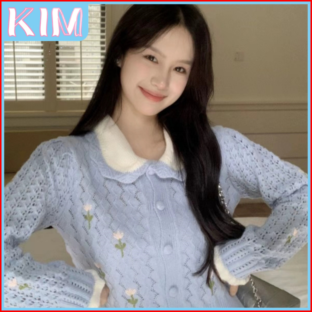 Kim Cardigan Korea Gaya Manis Cardigan Bunga Peony Outer Rajut Cute