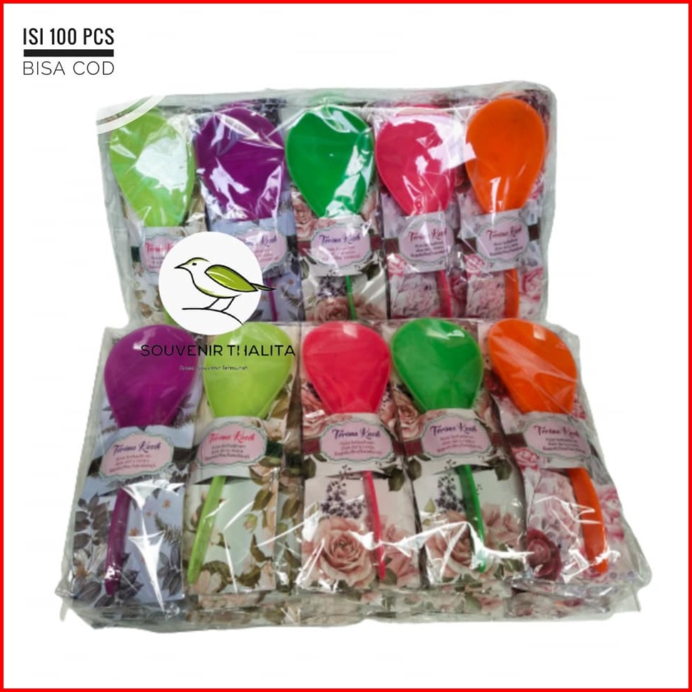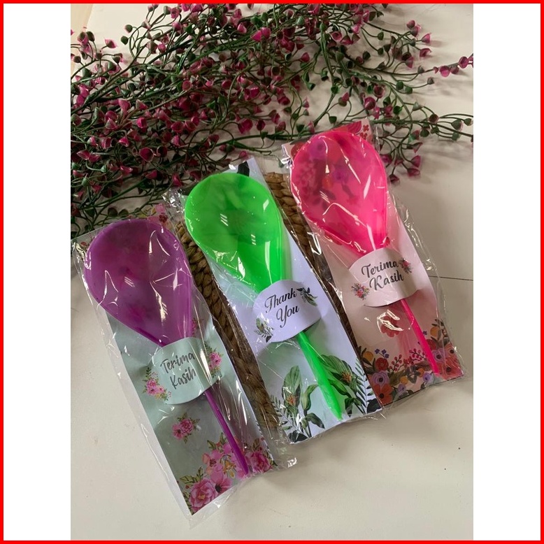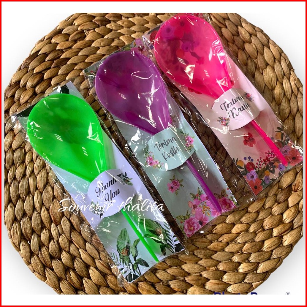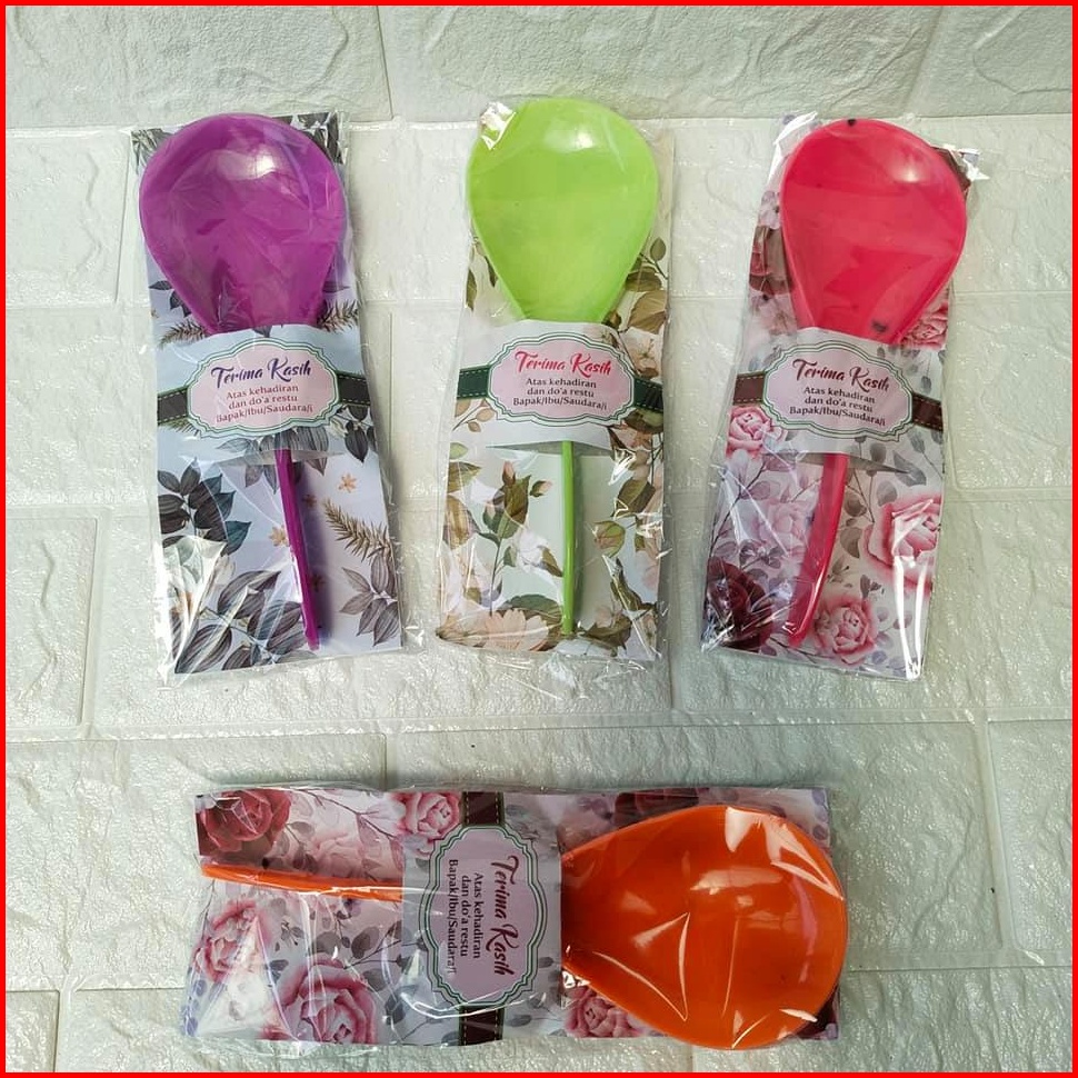 Isi 100 Pcs Souvenir Pernikahan Centong Nasi Pelangi Termurah Kemasan Alas Kertas Motif