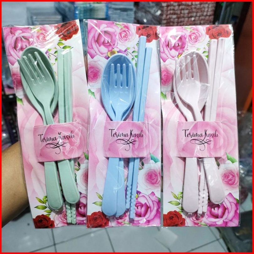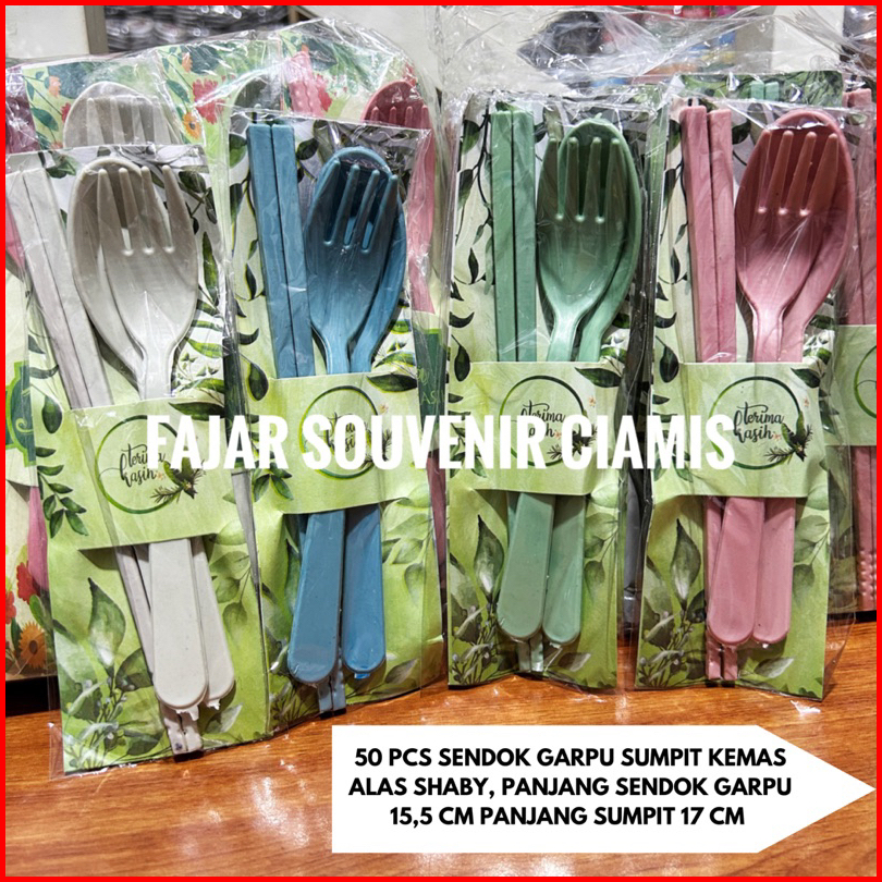 Isi 100 Pcs Souvenir Pernikahan Sendok Garpu Sumpit Kemas Plastik Alas Kertas Shaby Souvenir Hadiah