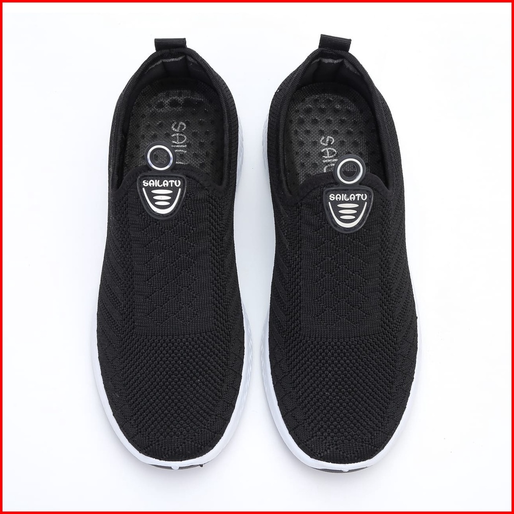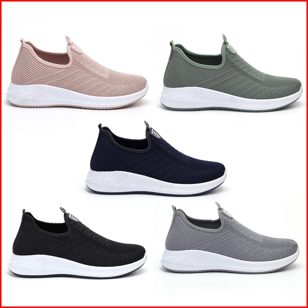 Sepatu Wanita Slip On Rajut Canvas Tanpa Tali Kekinian S850