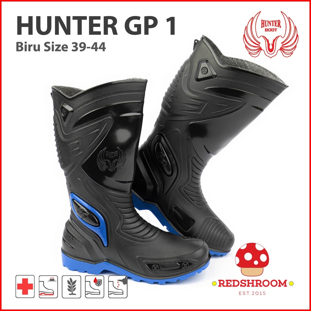 Sepatu Boot Tinggi Hunter Gp 1 Hitam Biru Boots Karet Lokal Lentur Ringan Anti Air Slip Touring