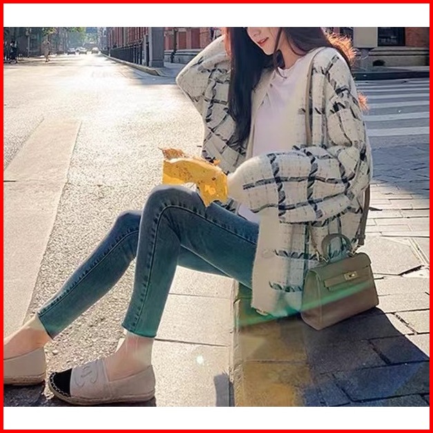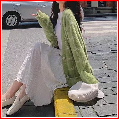 Square Triple Color Cardi Korean Cardigan Sweather Korea Sweater Wanita Bahan Rajut Premium