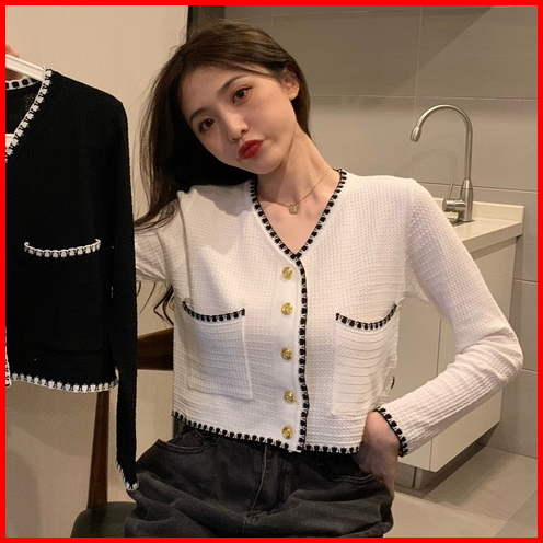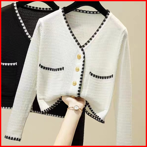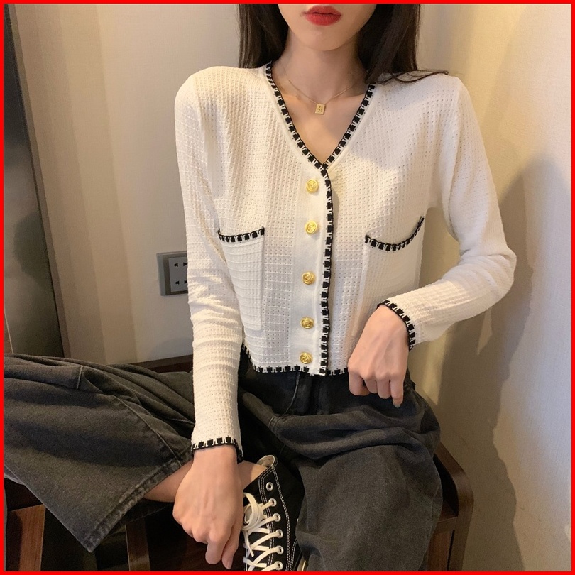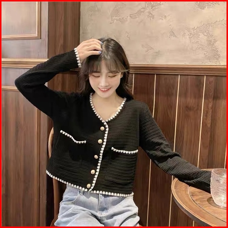 Po Floret Kardigan Rajut Fashion Slim Atasan Pendek Single Breasted Wanita