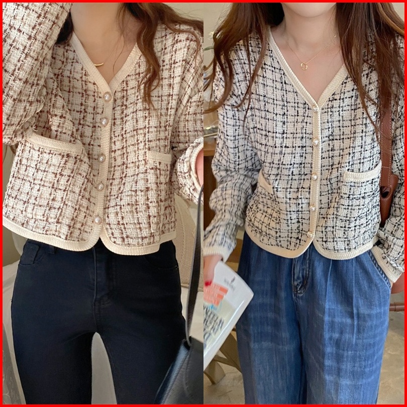 Jaket Cardigan Lengan Panjang Kekinian Premium V-neck Jacket Korean Style Wanita Lengan Panjang Crop Top Import Cardigan