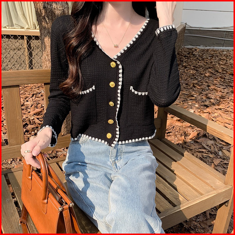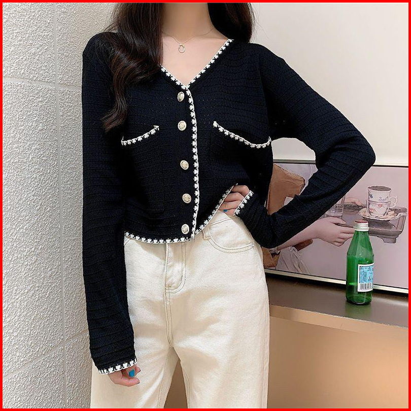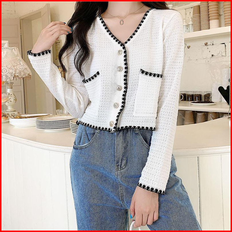 Knit Top Pocket Import C379 Cardigan Rajut Lengan Panjang Impor Outer V Neck Korean Style