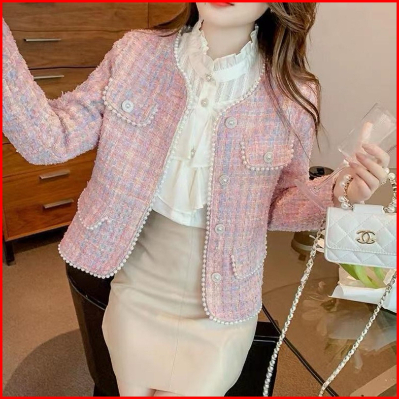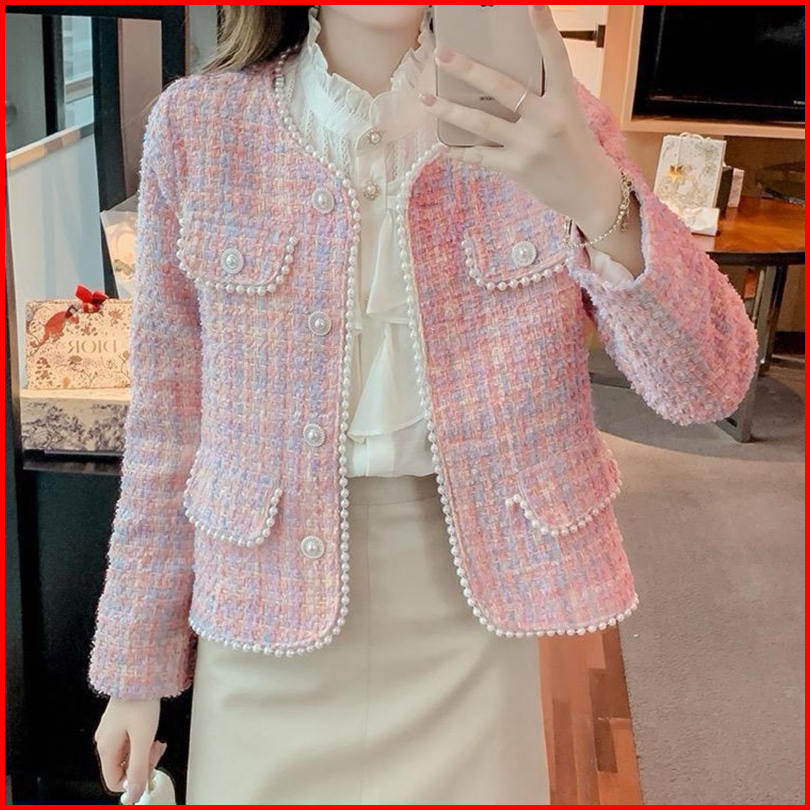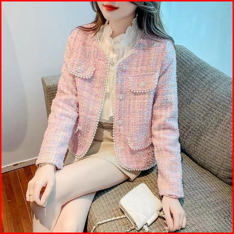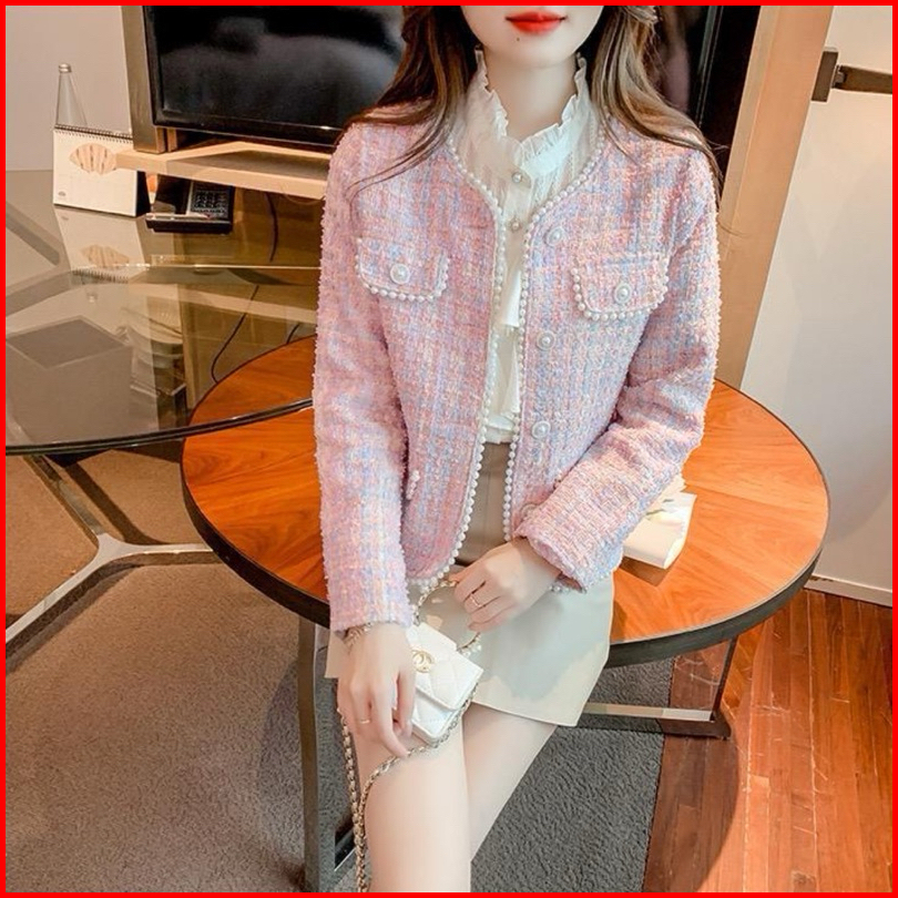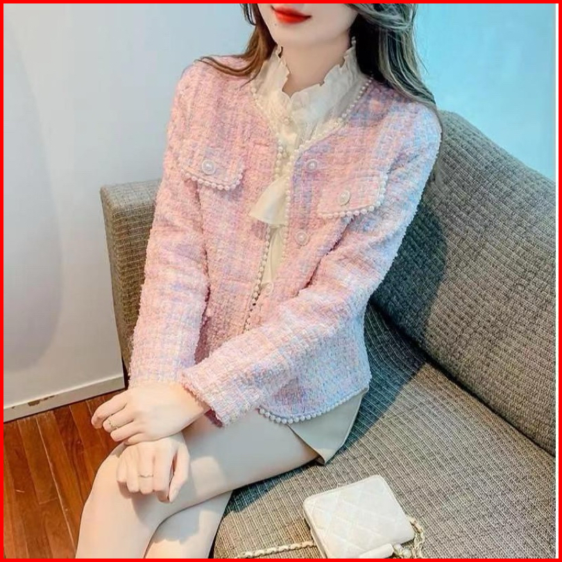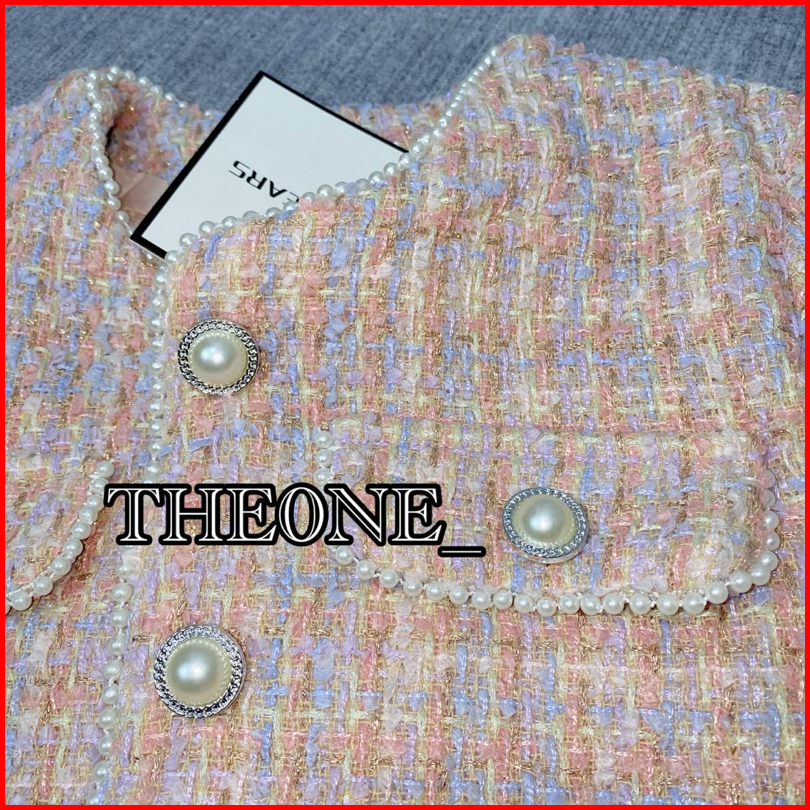 The0ne Feminine Sweety Blazer Tweed Soft Pink Rainbow M-2xl