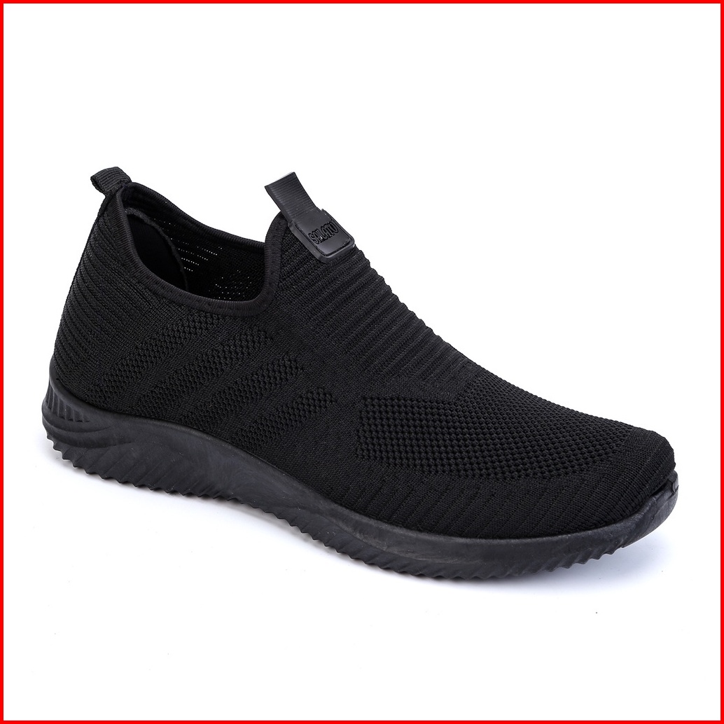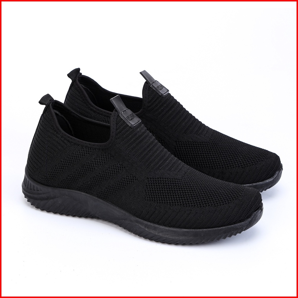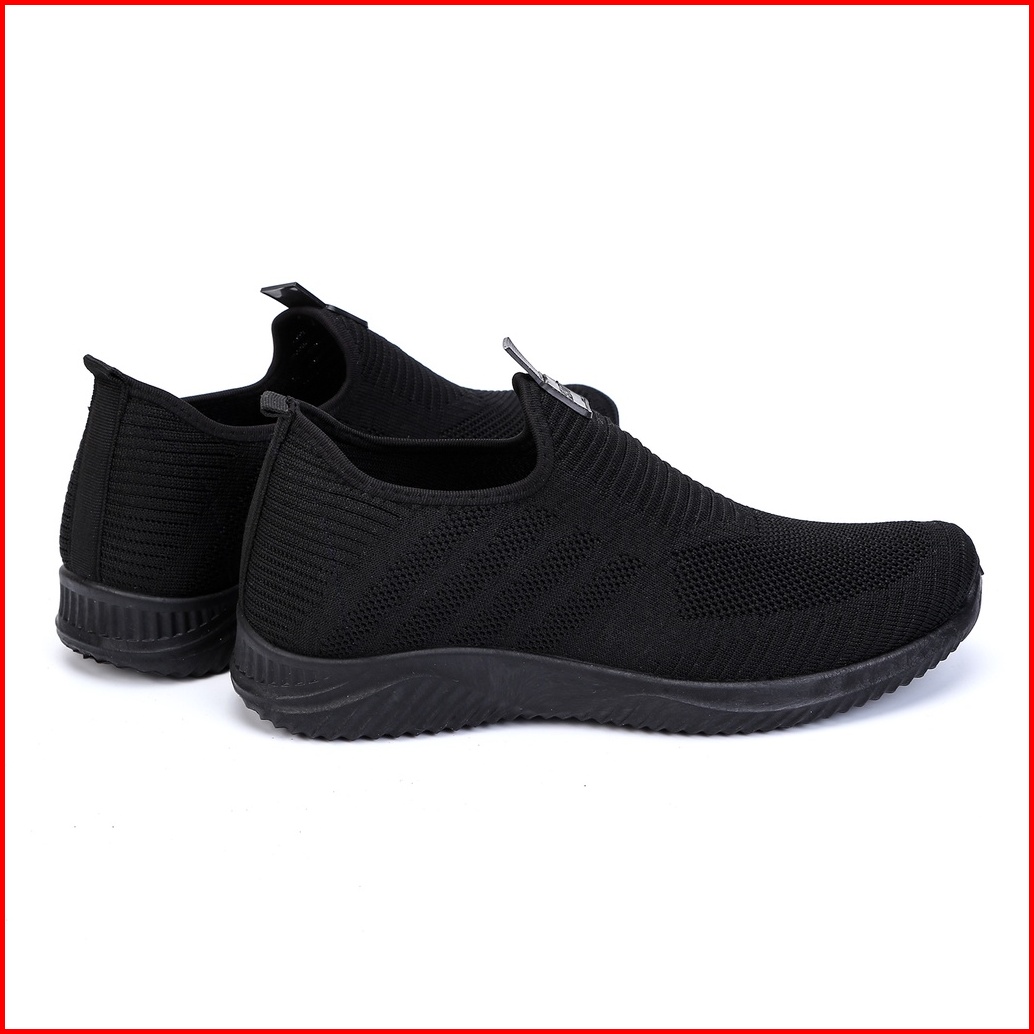 Sepatu Sneakers Cowok Sepatu Pria Tanpa Tali Full Hitam Terbaru Kode E