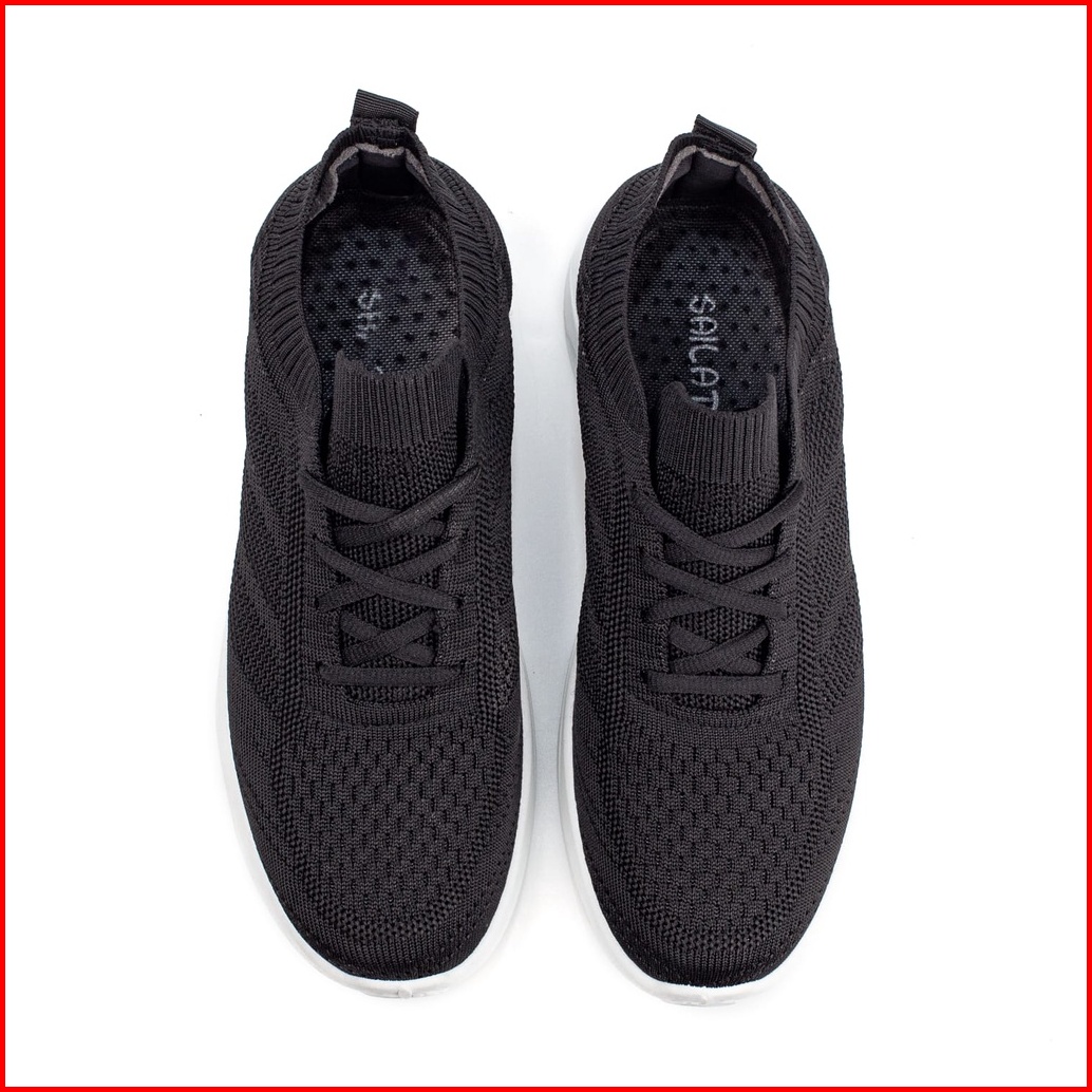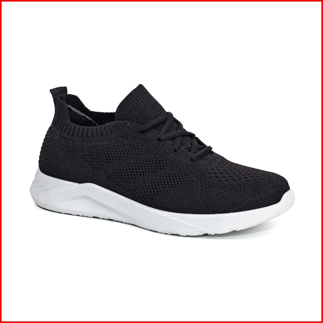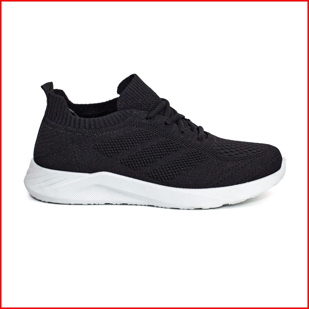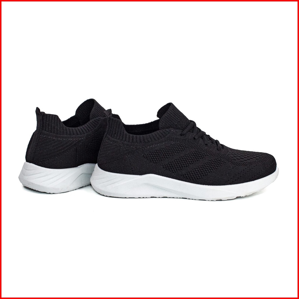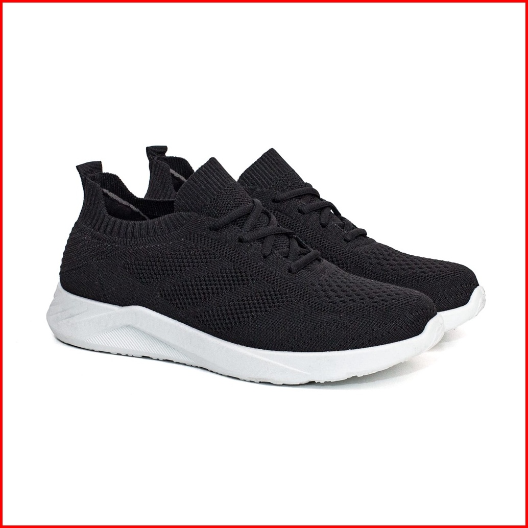Sepatu Sneakers Pria Rajut Import Sport Shoes Casual Fashion Hitam Putih Tali Sk820