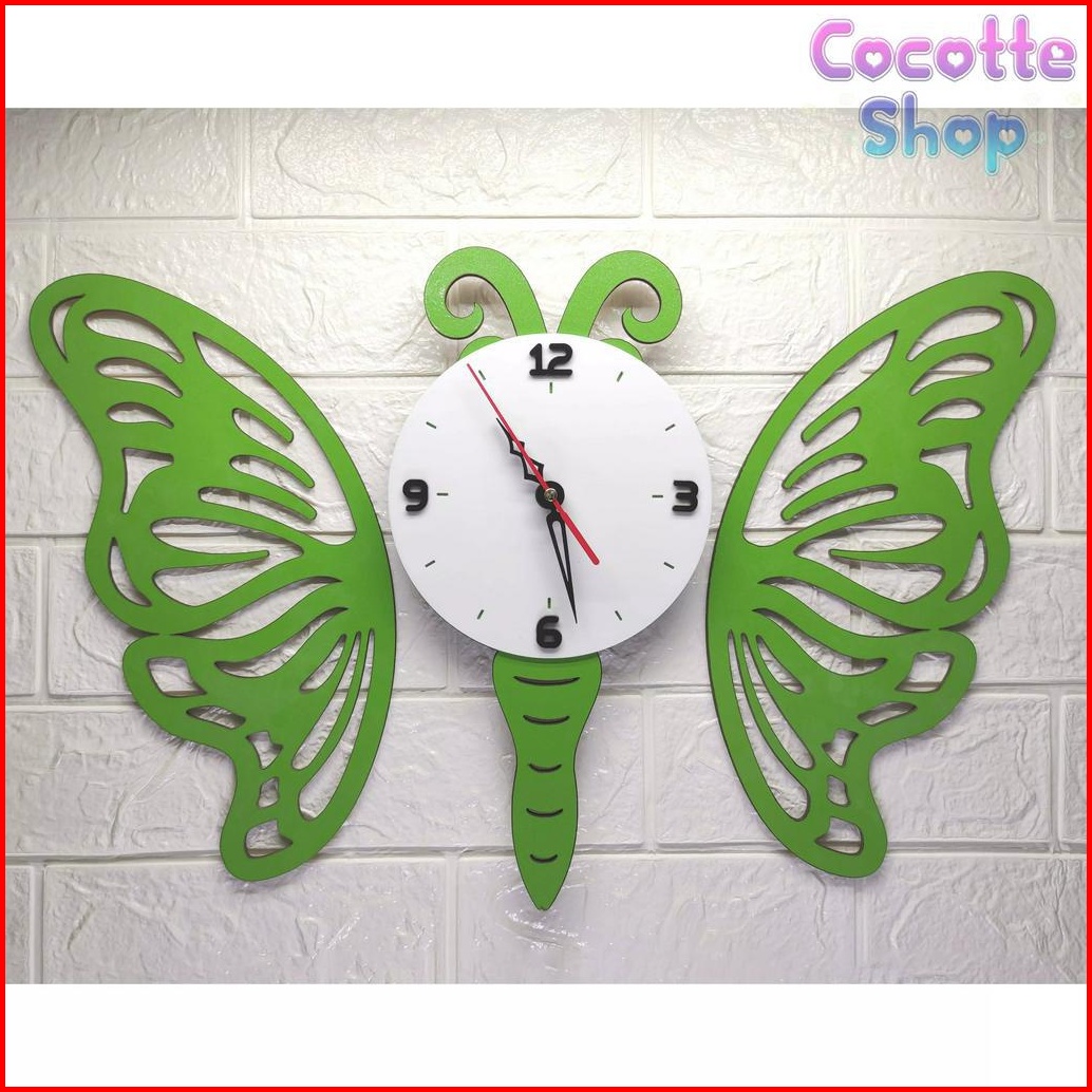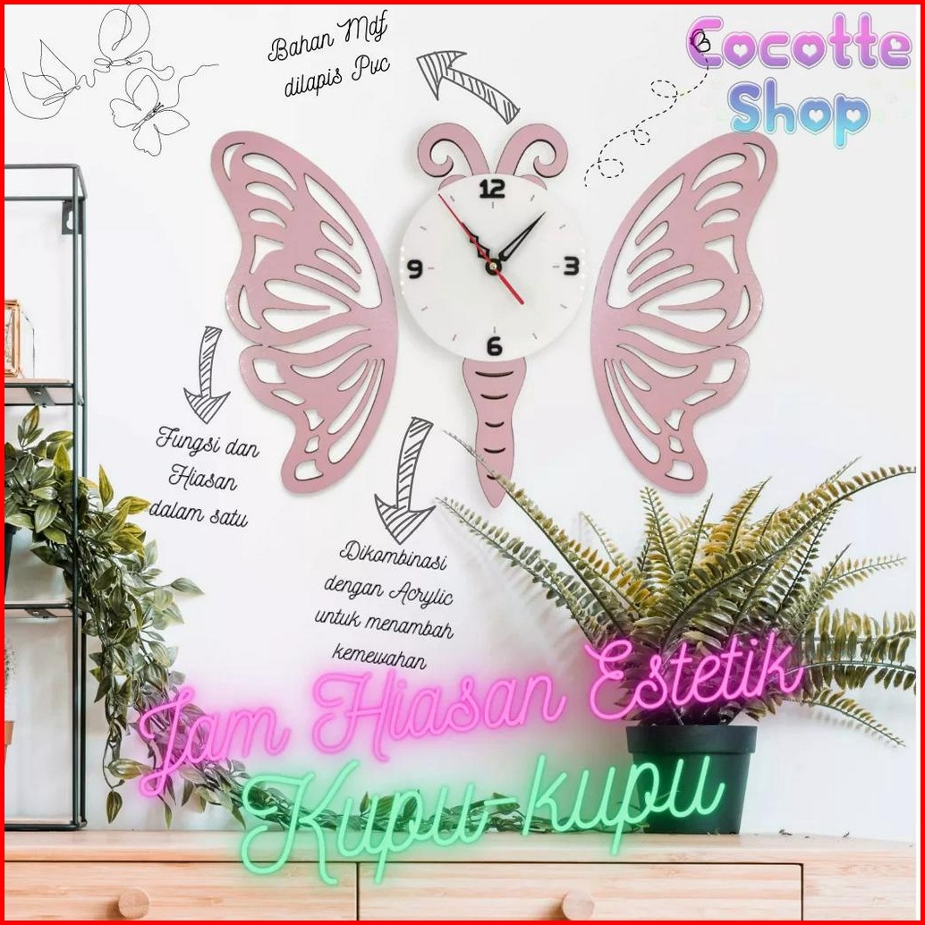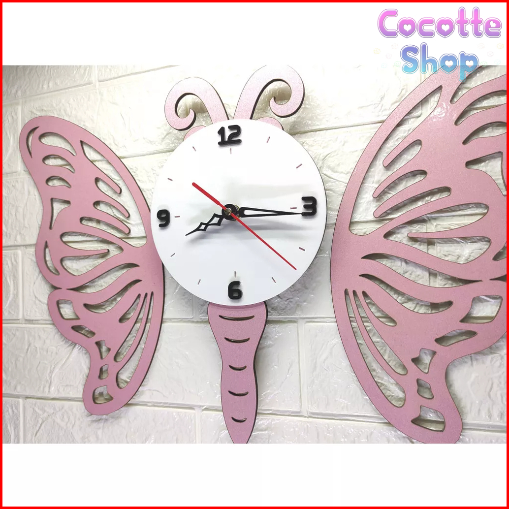 Jam Dinding Hiasan Dinding Estetik Minimalis Kayu Kupu Kupu Jd002