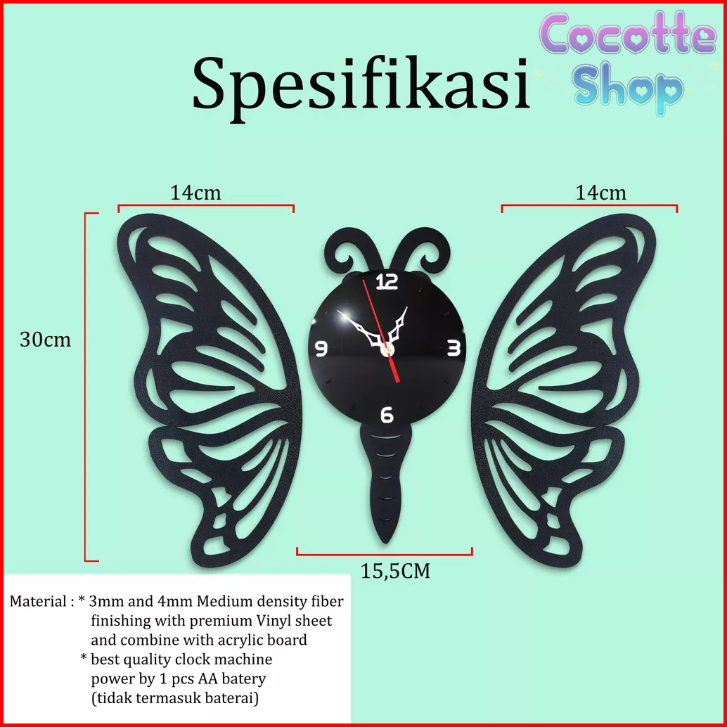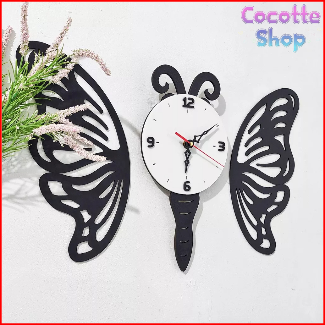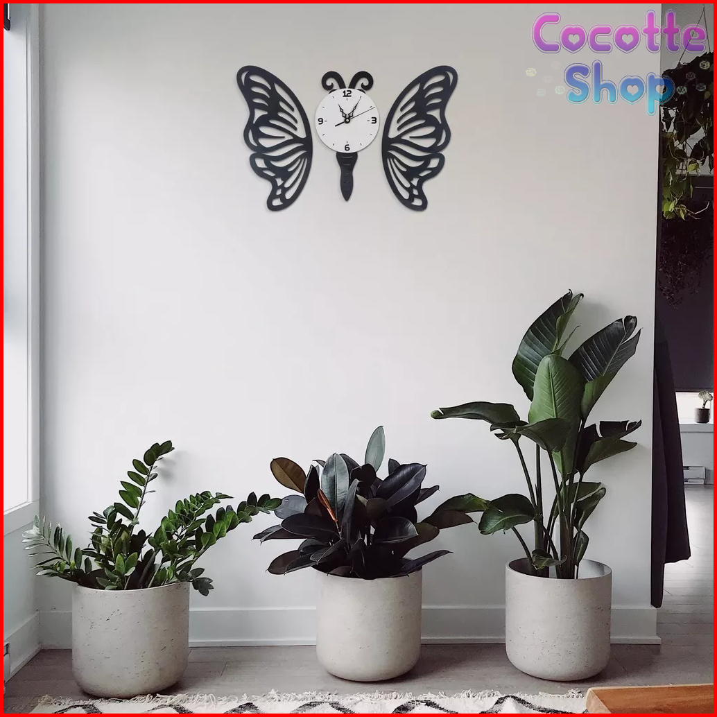 Jam Dinding Hiasan Dinding Estetik Minimalis Kayu Kupu Kupu Jd002