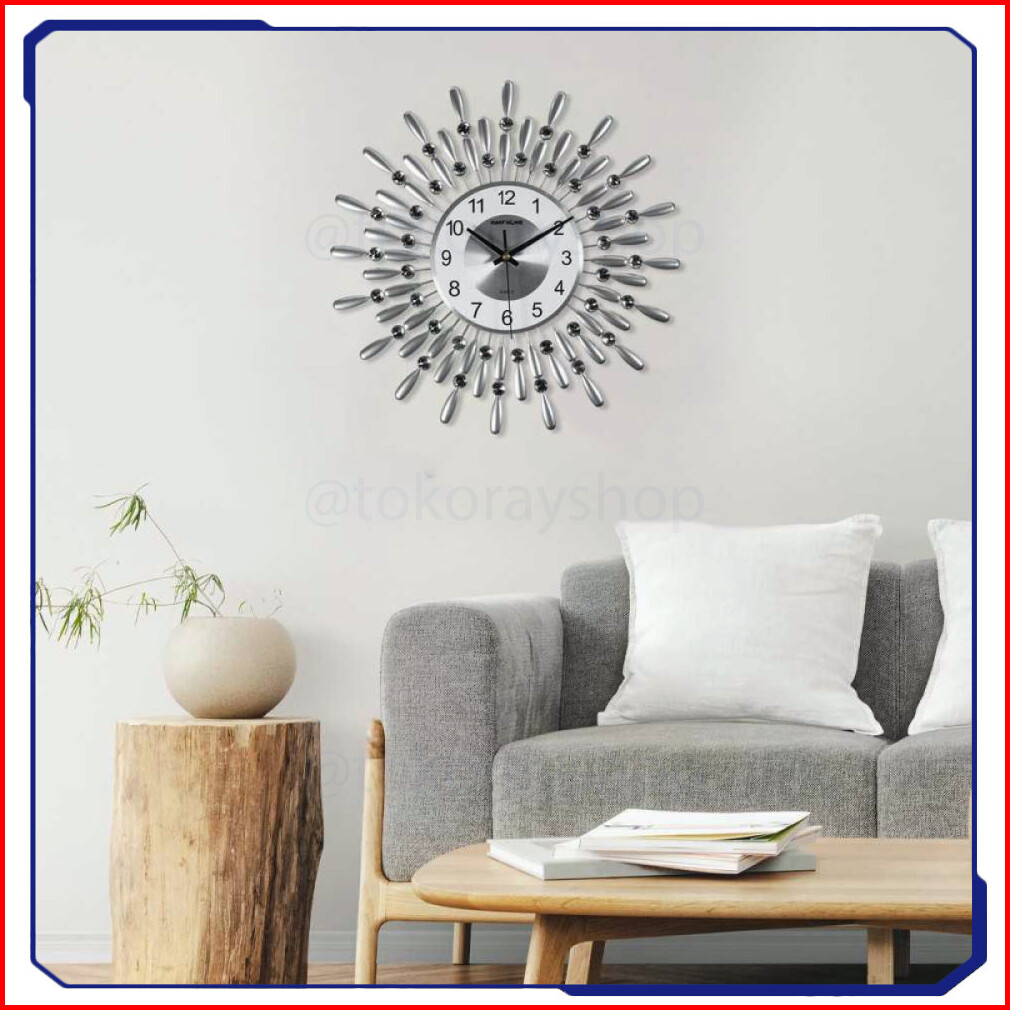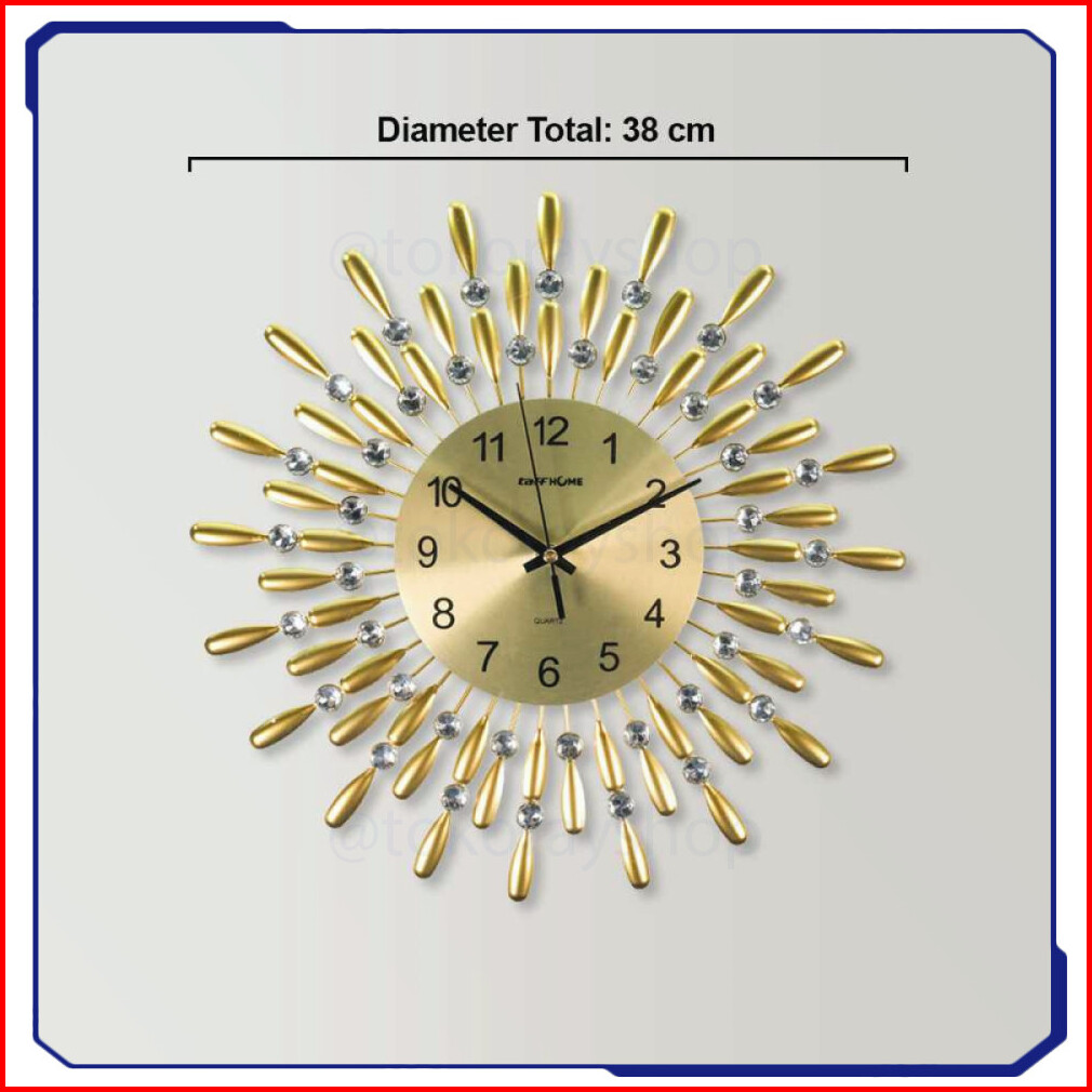 Jam Dinding 3d Quartz Creative Design Model Luxury Diamond 37 Cm - H74