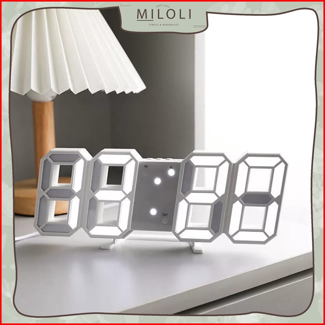 Miloli Jam Digital 3d Clock Led Meja Alarm Dinding Clock Aesthetic Korean Style Premium - F0172