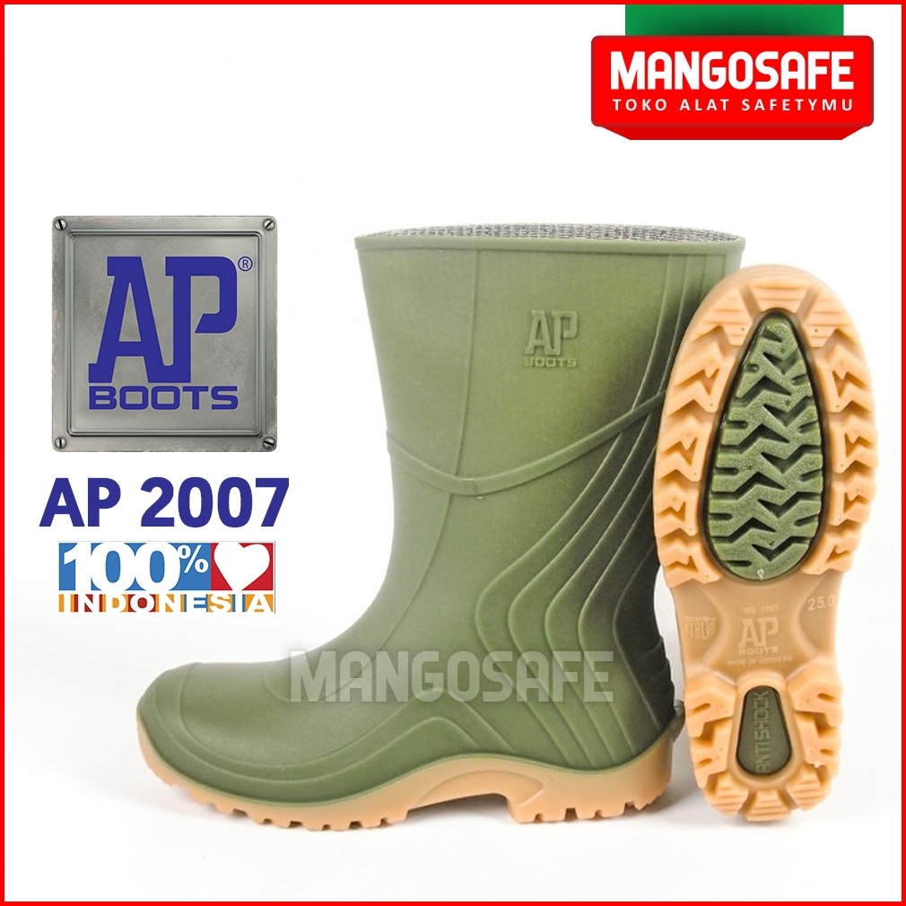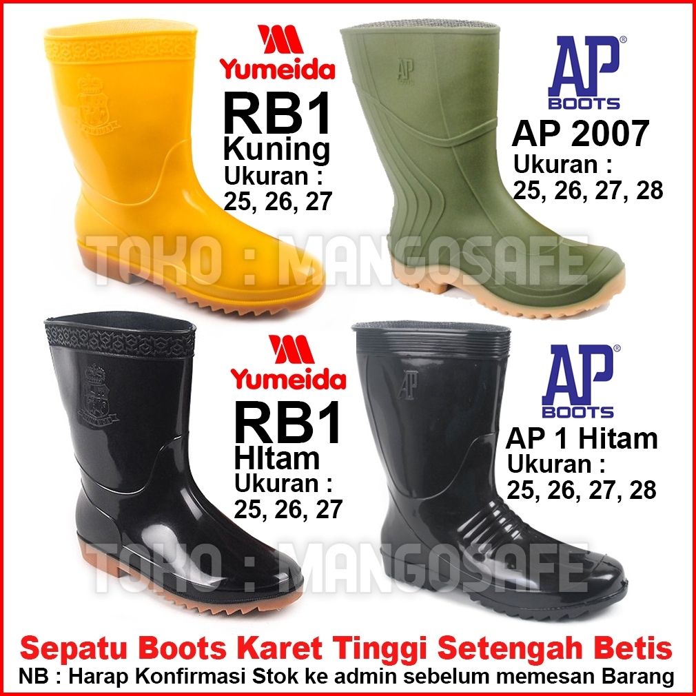 Sepatu Boot Karet Tinggi Setengah Betis Hijau Kuning Hitam Sepatu Pvc Boots Hujan Proyek Petani Sawah Kebun Tambang Pabr