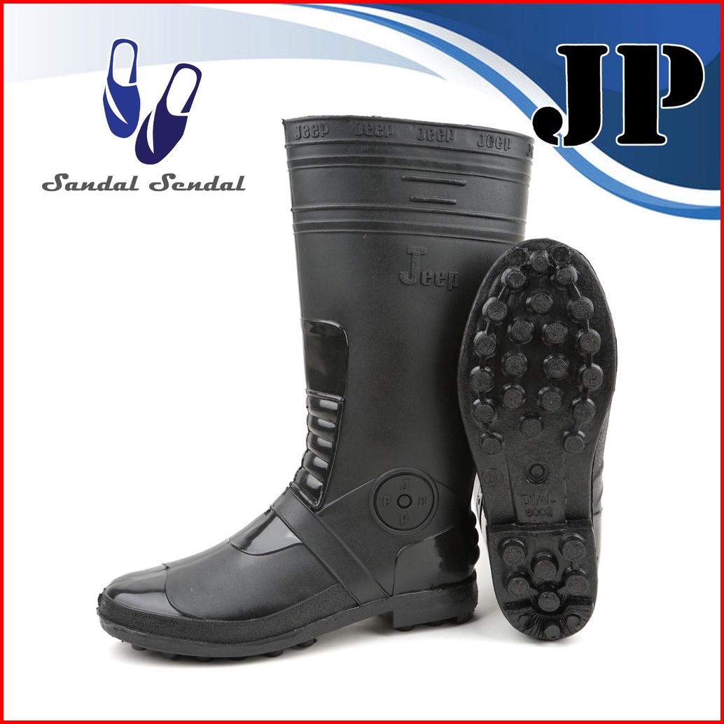 Sepatu Boot Tinggi Jp 8002 Hitam Jeep Karet Lokal Lentur Ringan Proyek