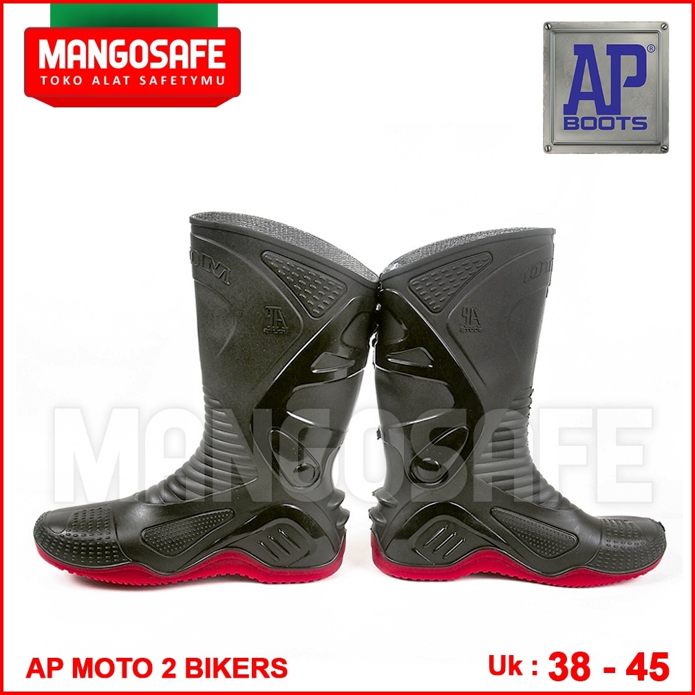 Ap Boots Moto 2 Sepatu Boot Motor Biker Touring Pvc Karet Tinggi Panjang Anti Air Hitam Merah Apboots Sepatu Boot Hujan