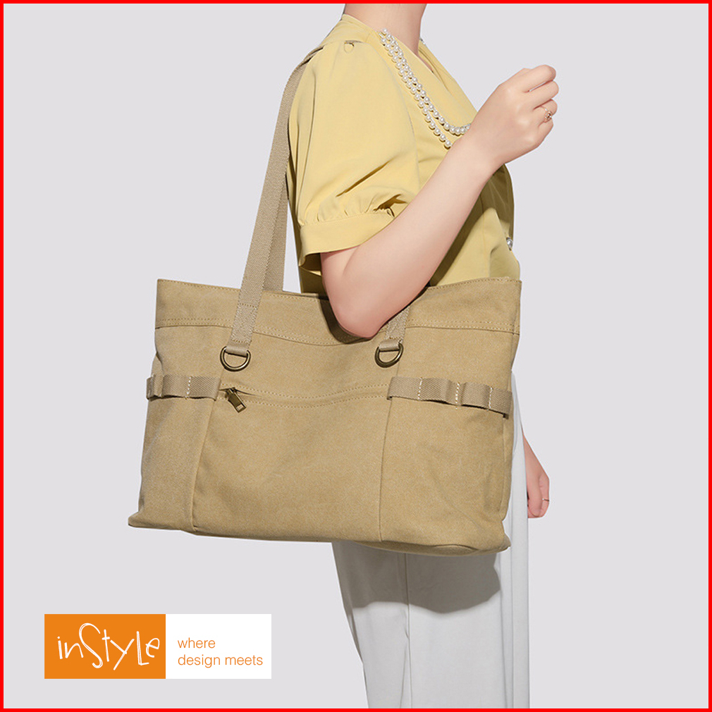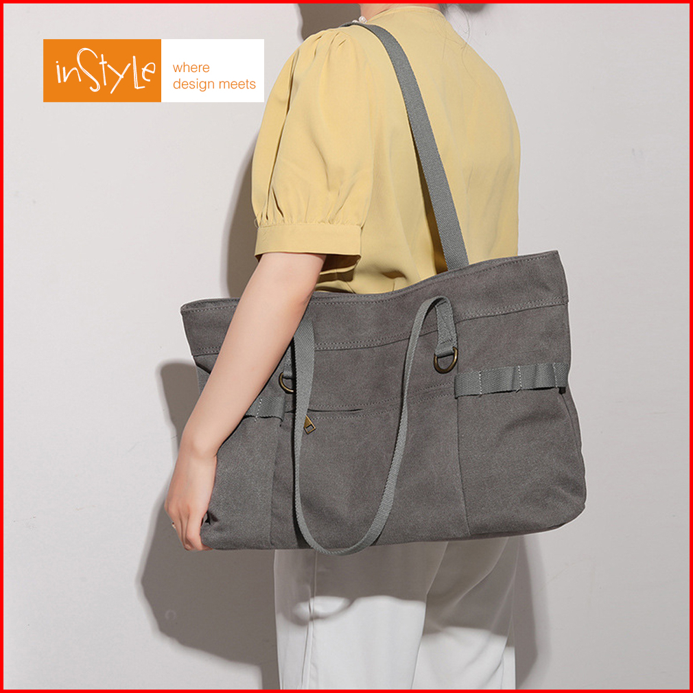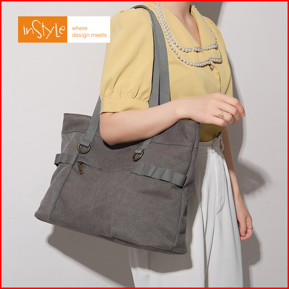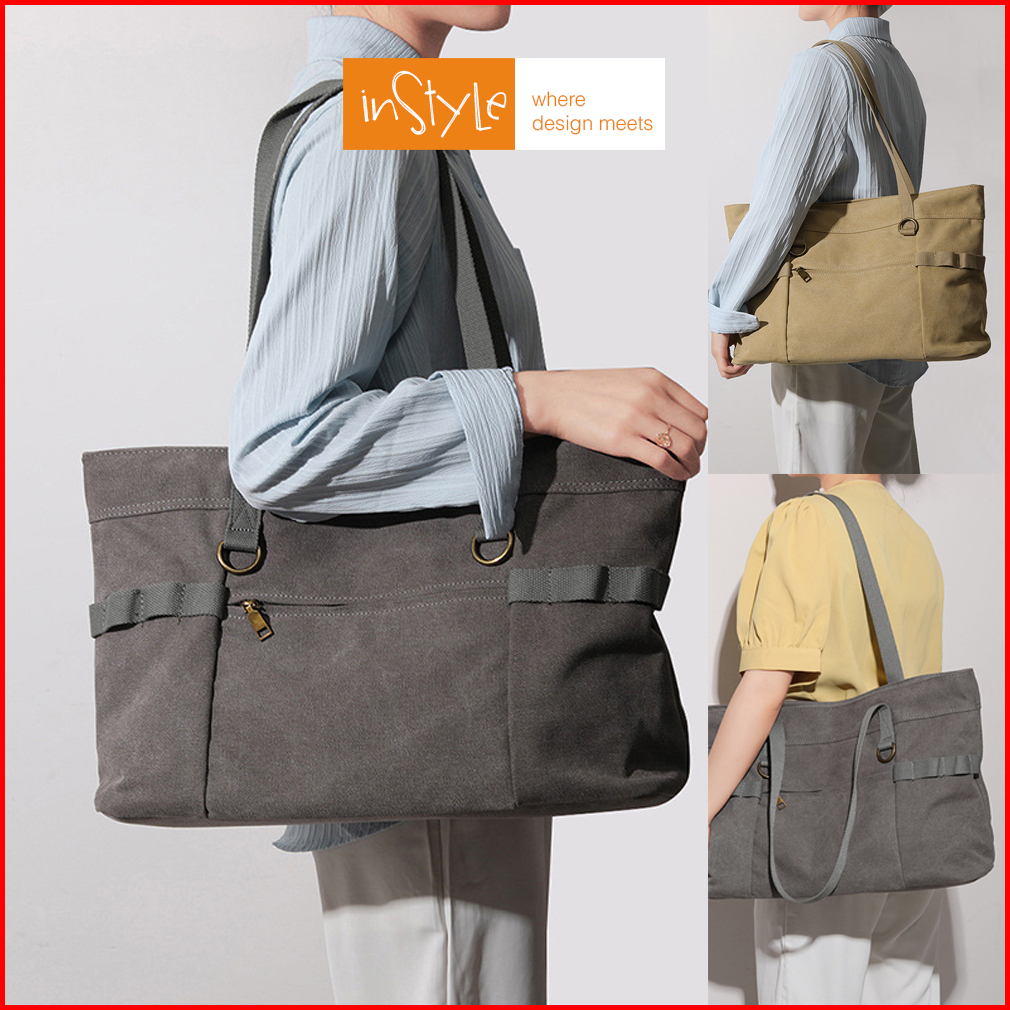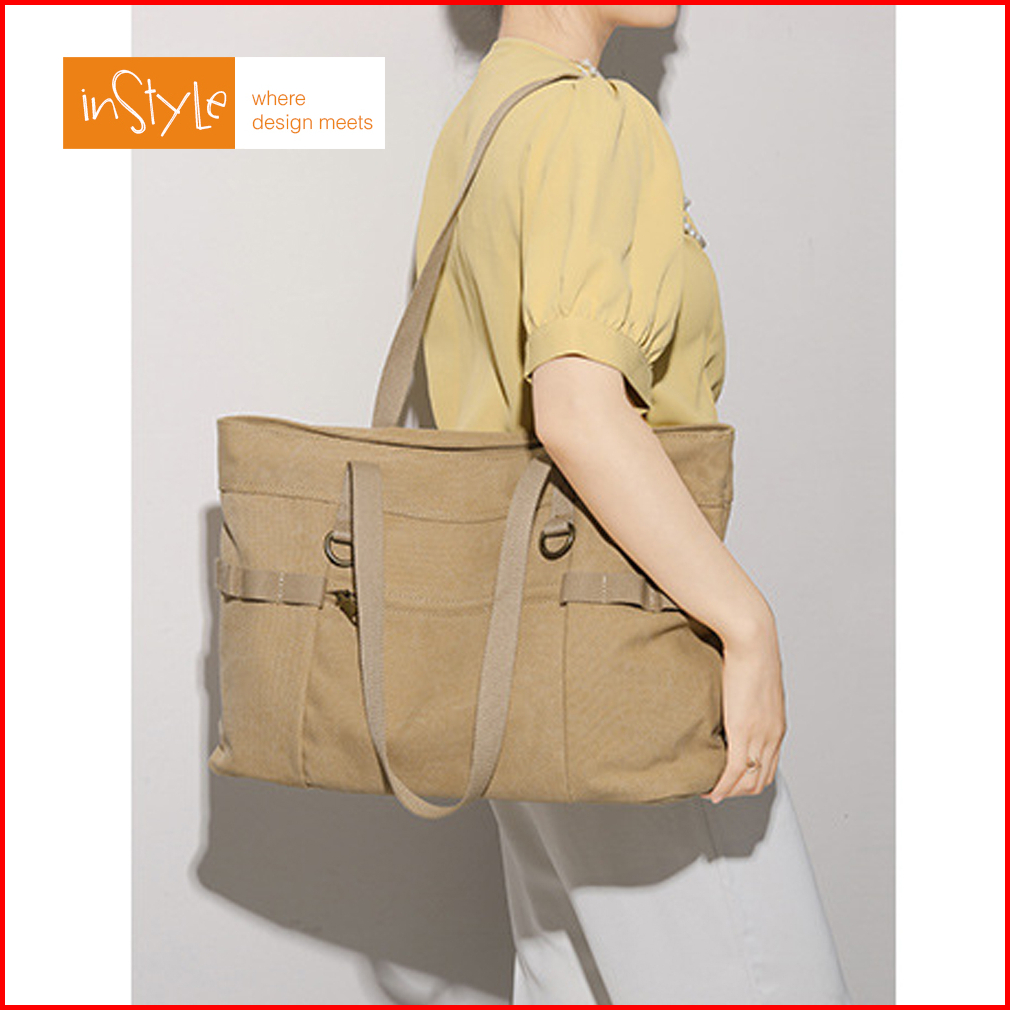 Tas Tote Laptop Bahu Kanvas Wanita Korean Style Bag Besar T7-006