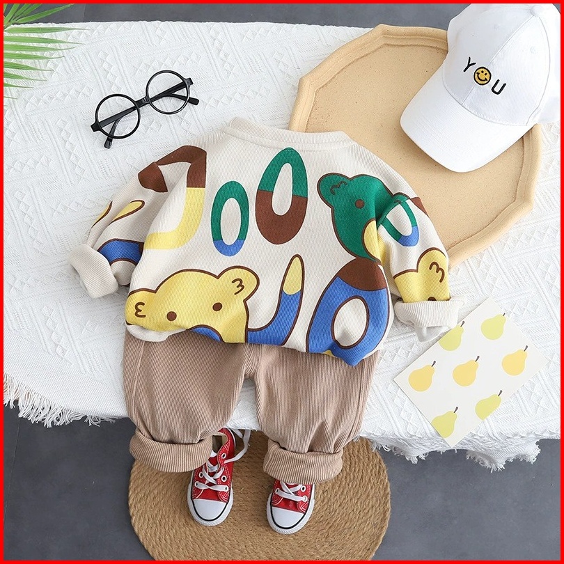 Brownieground Pakaian Anak Usia 6 Bulan - 5 Tahun Motif Oubear Cream Setelan Baby Unisex Premium