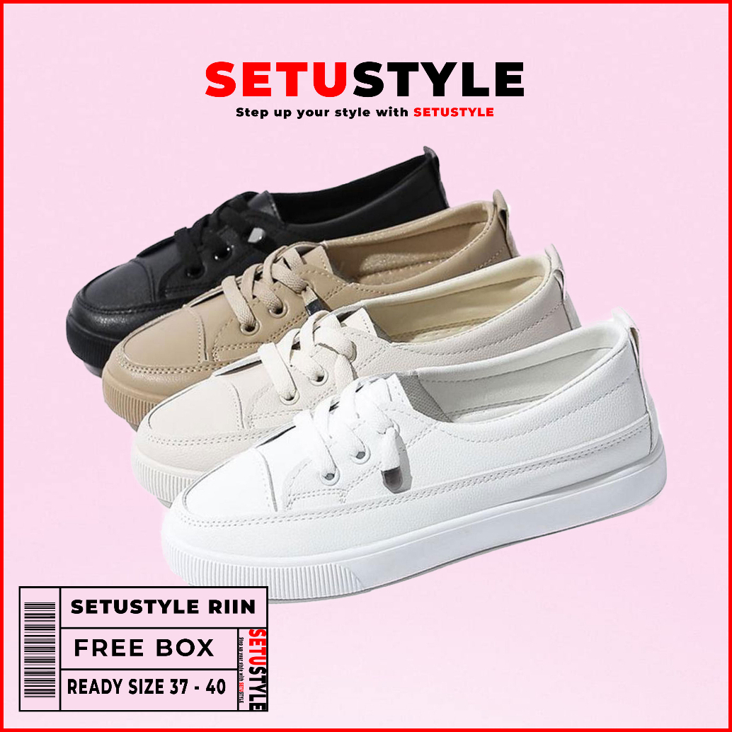 Setu Style Riin Sepatu Slip On Kekinian Model Flatshoes Hitam Wanita Elegan Tali Polos Korean Style