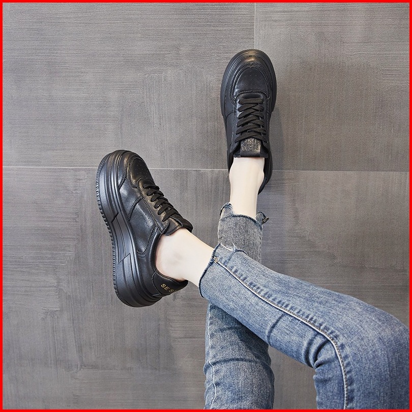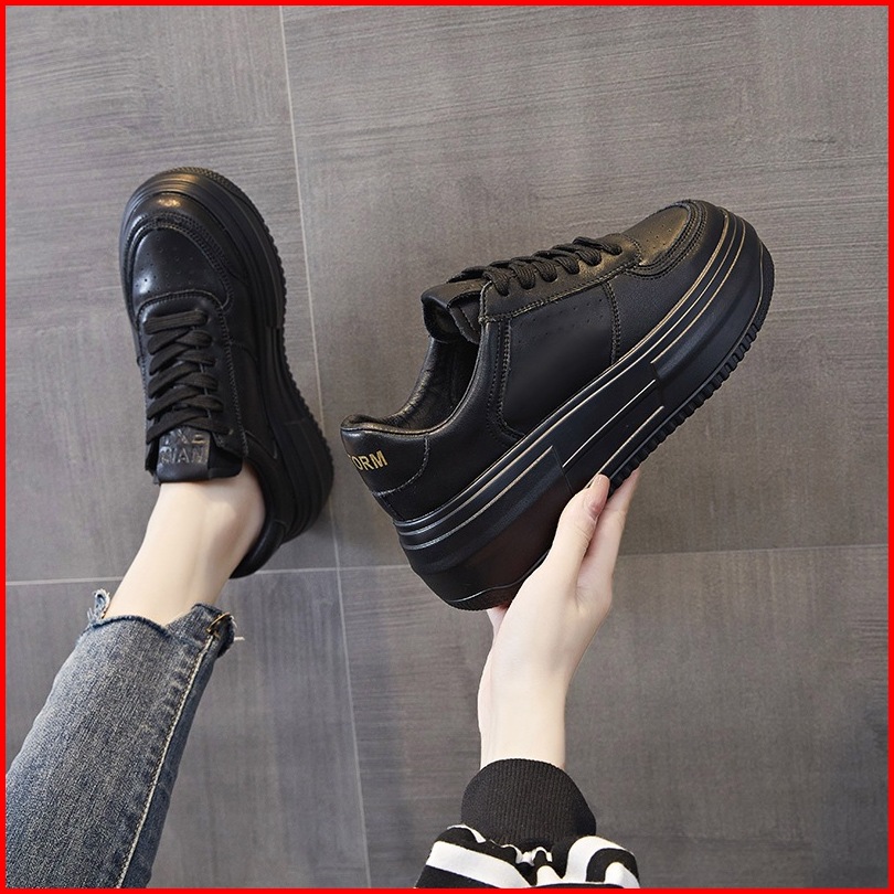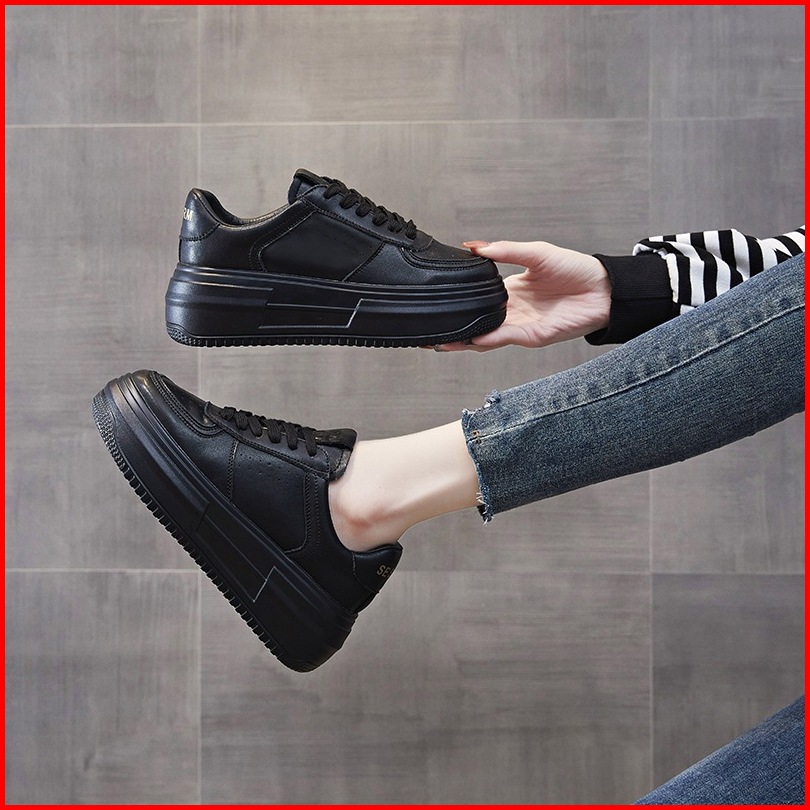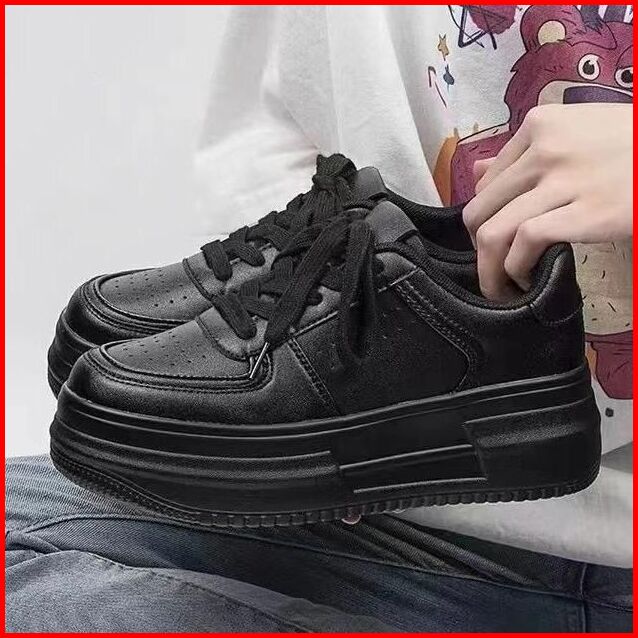Sepatu Sekolah Wanita Hitam Polos Bertali Kasual Kuliah Sepatu Sneakers Wanita Korea Hana Series
