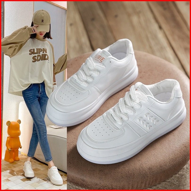 Sepatu Sneakers Korea Wanita Warna Putih Polos Terbaru Import Korea Minangstore.id