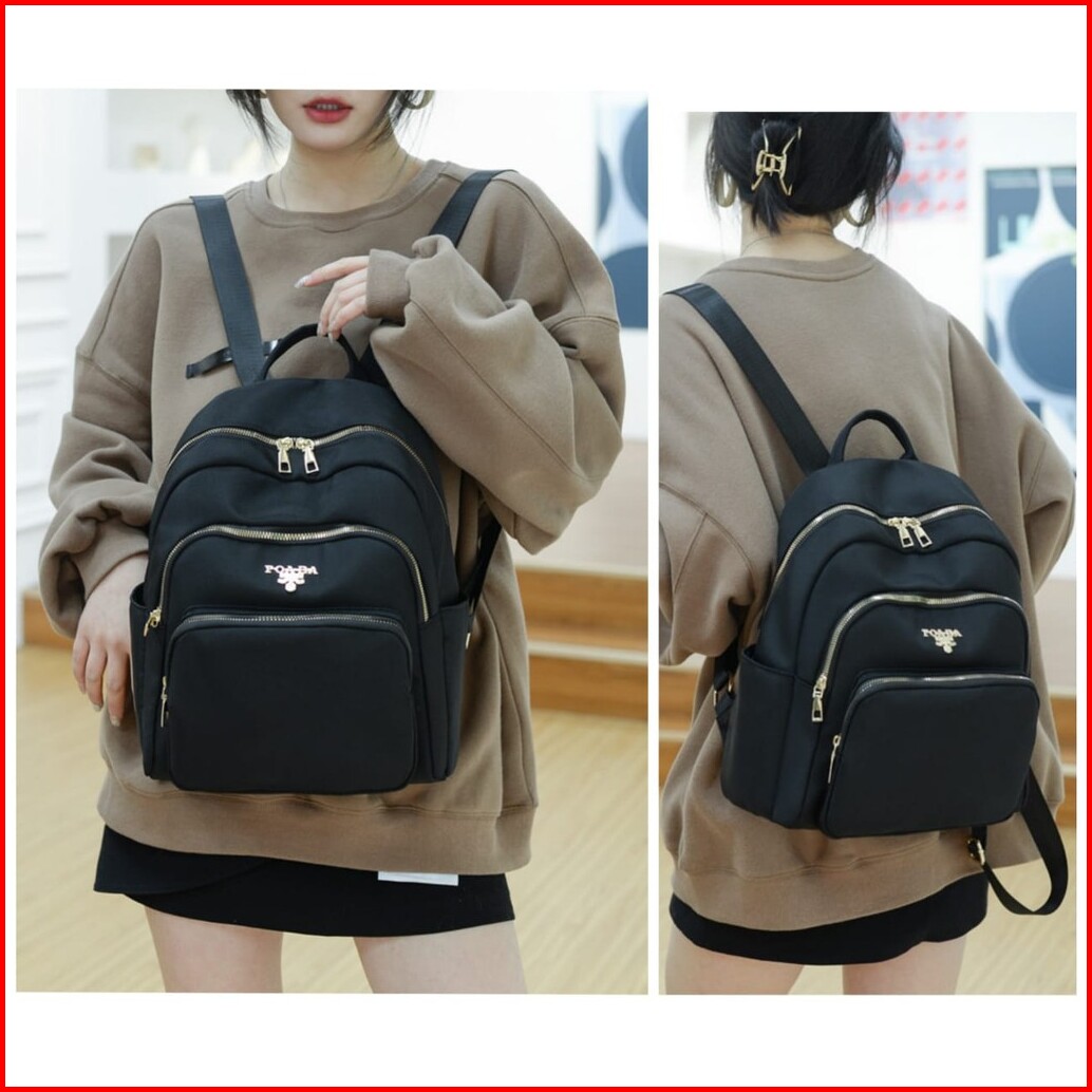 Tas Ransel Wanita 3 Resleting Backpack Batam Korea Hitam Minaba Ta325b5 Kerja Sekolah Premium