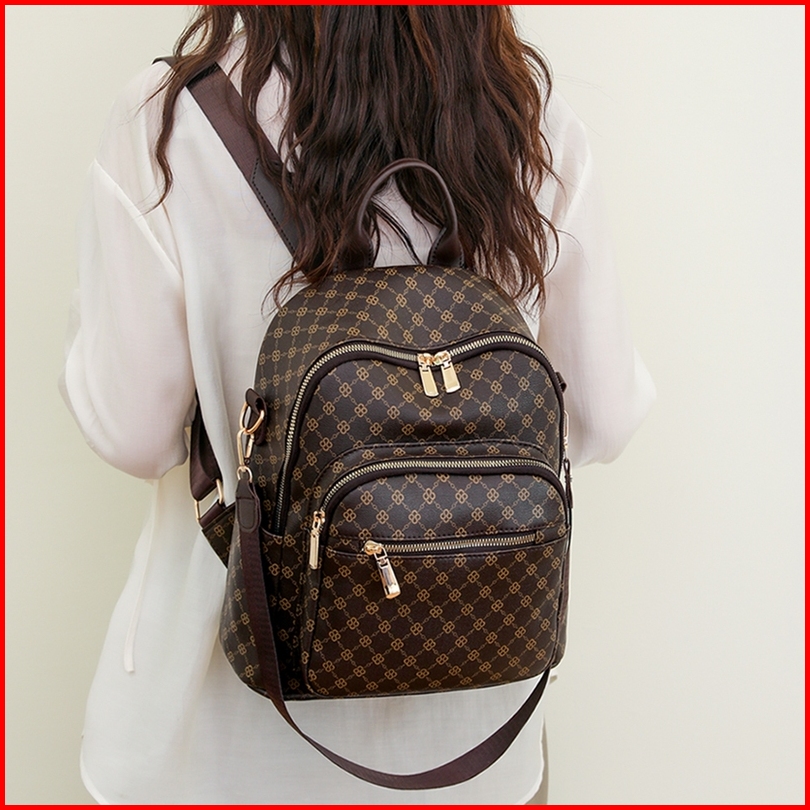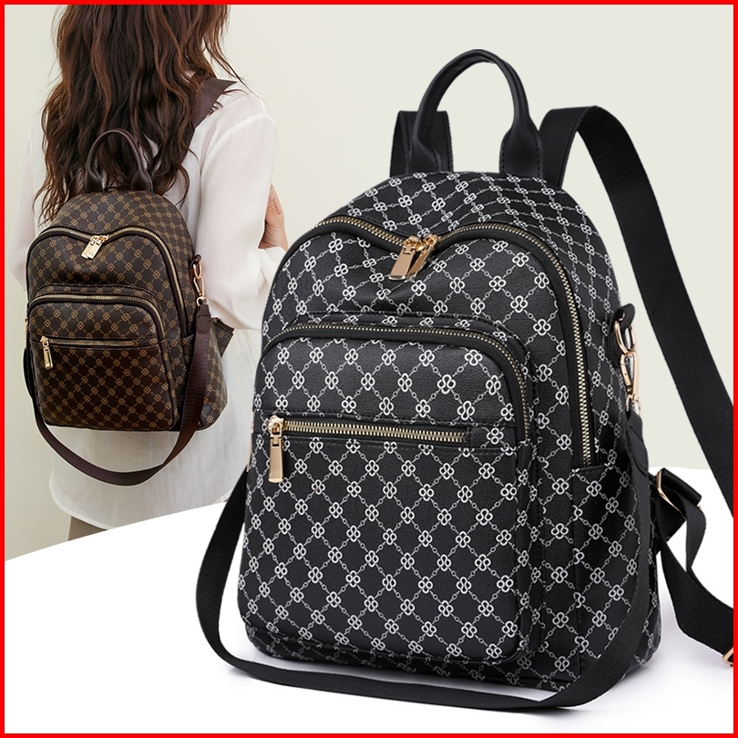 Ransel Wanita Multifunction Ransel Sling Shoulder Selempang Bahu Kulit Buatan Tahan Air Backpack Perempuan Fashion Beg B