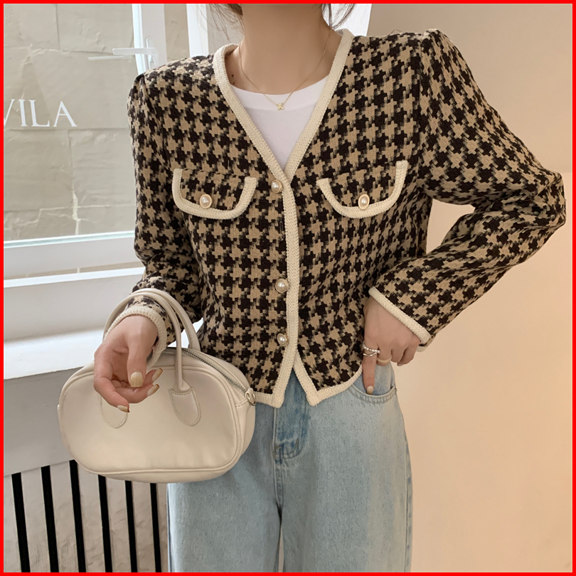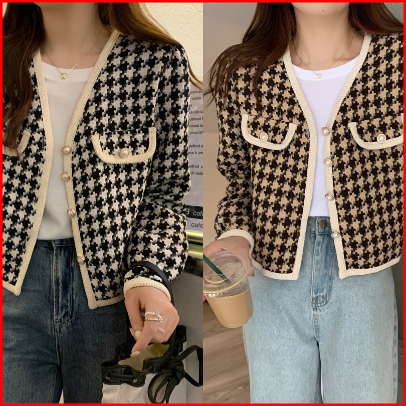 Jaket V-neck Wanita Korean Style Terbaru Outer Crop Outer Kekinian Jaket Import V-neck Outerwear Pakaian Wanita Jacket L