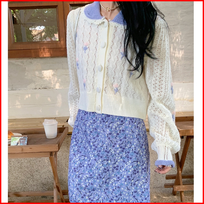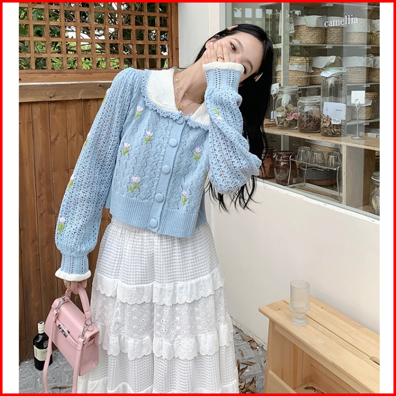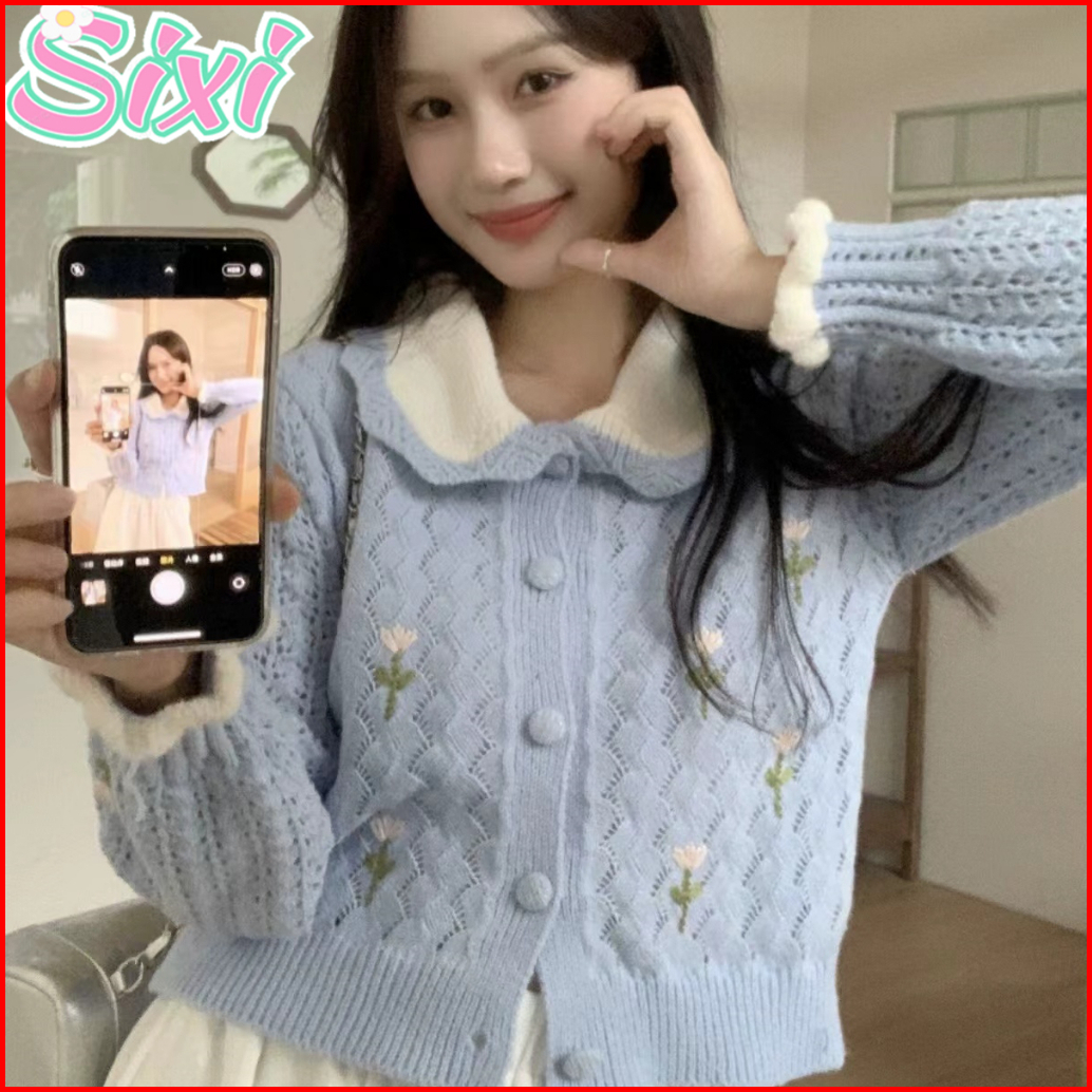 Sixi Cardigan Rajut Cute Cardigan Rajut Motif Bunga Peony Outer Knit Soft Gaya Manis