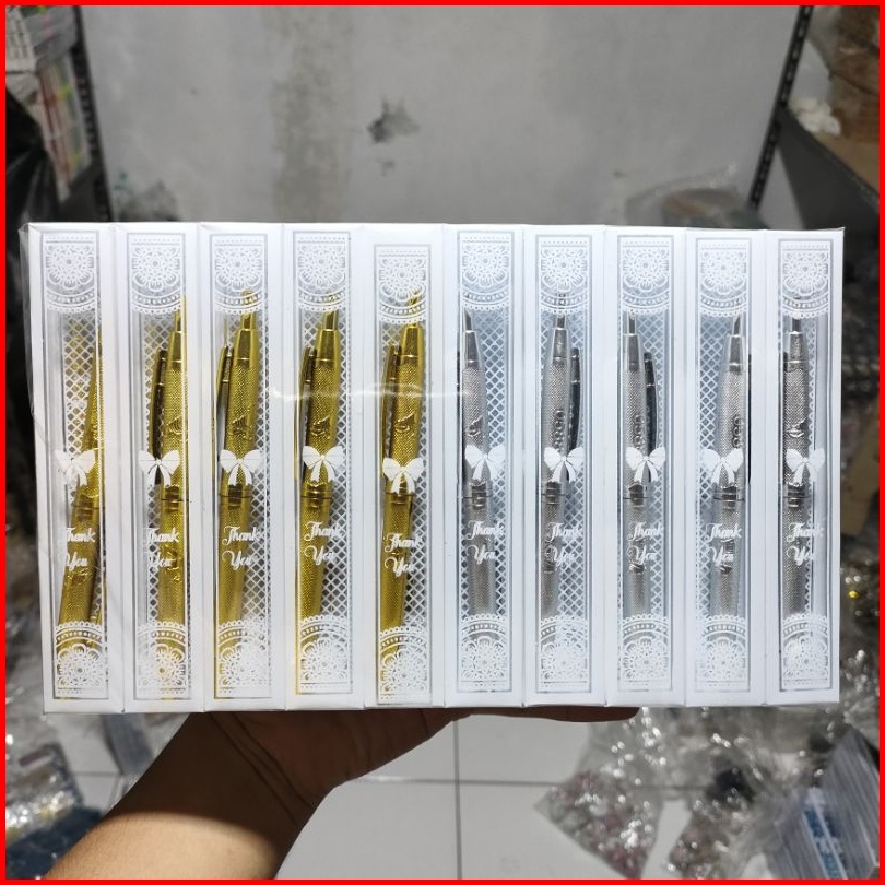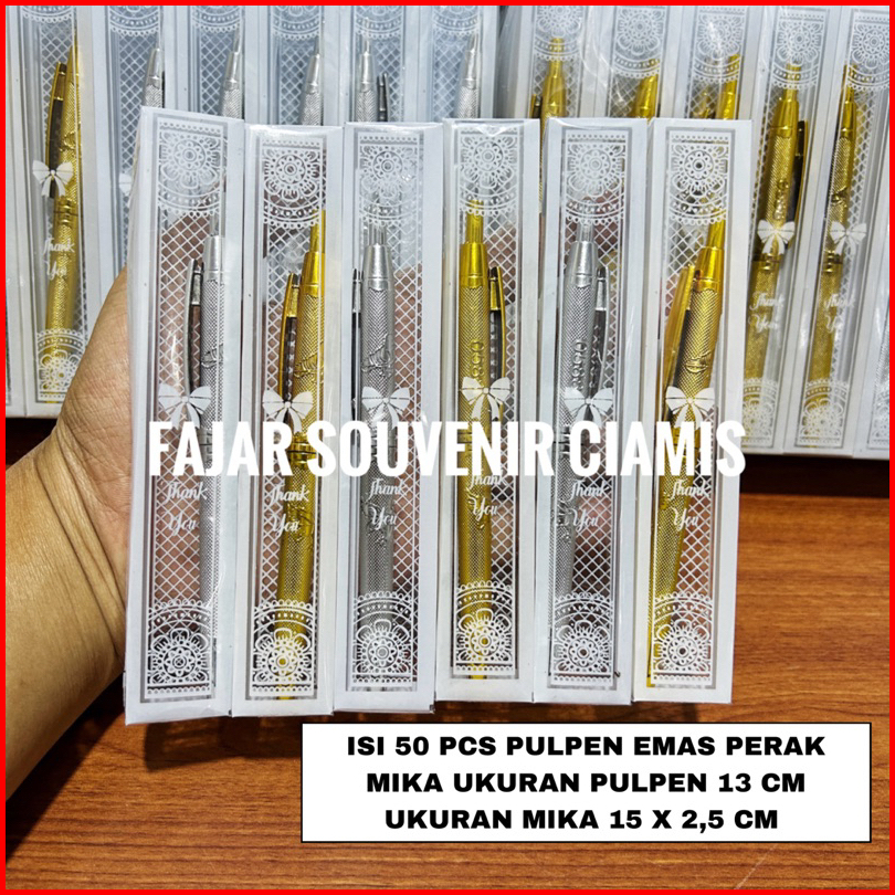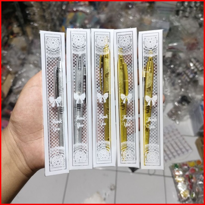 1 Pack 50 Pcs Souvenir Pernikahan Pulpen Perak Kemasan Mika Souvenir Hadiah Ulang Tahun
