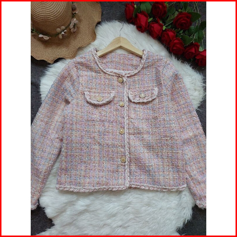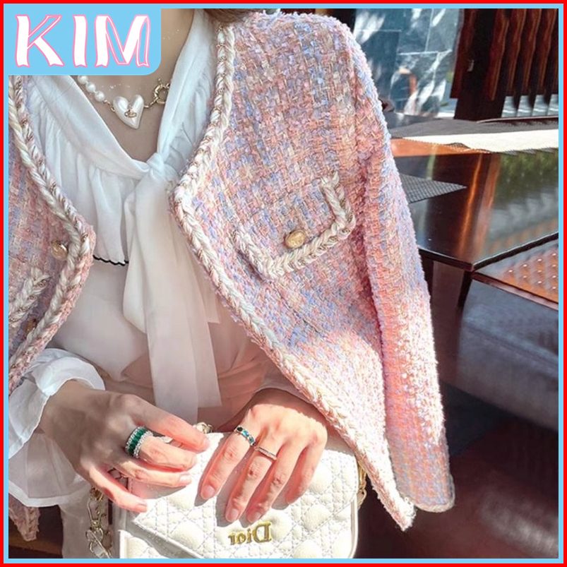 Kim Vn Yuki Tweed Blazer Outer Cardigan Tweed Korean Winter Blazer Auntum Baju Kondangan Wanita Blazer Wanita Style Kore