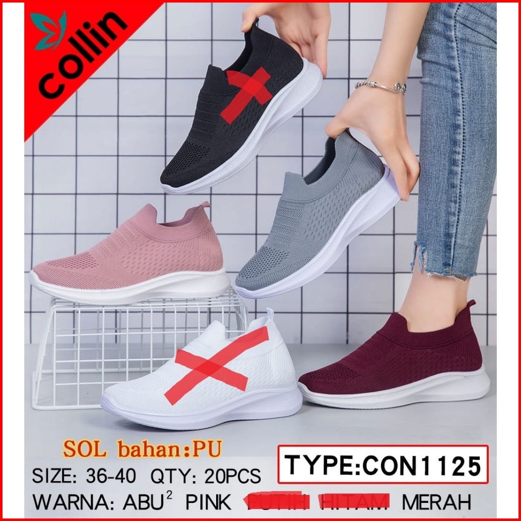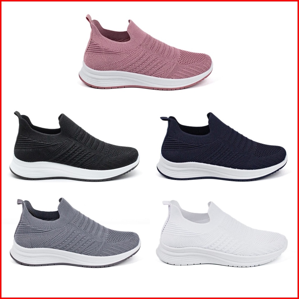 Sepatu Slip On Wanita Sports Shoes Olahraga Cewek Shoes Bahan Rajut A3090