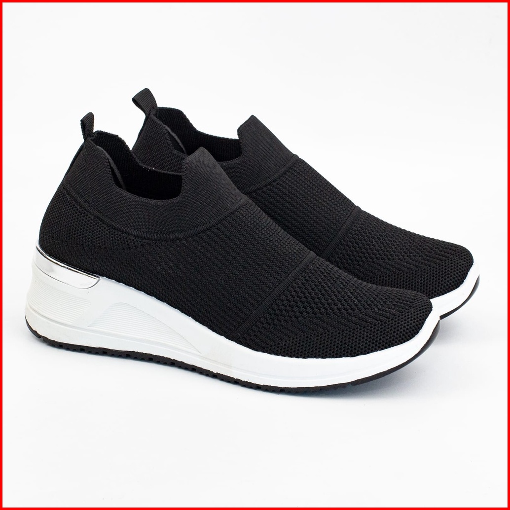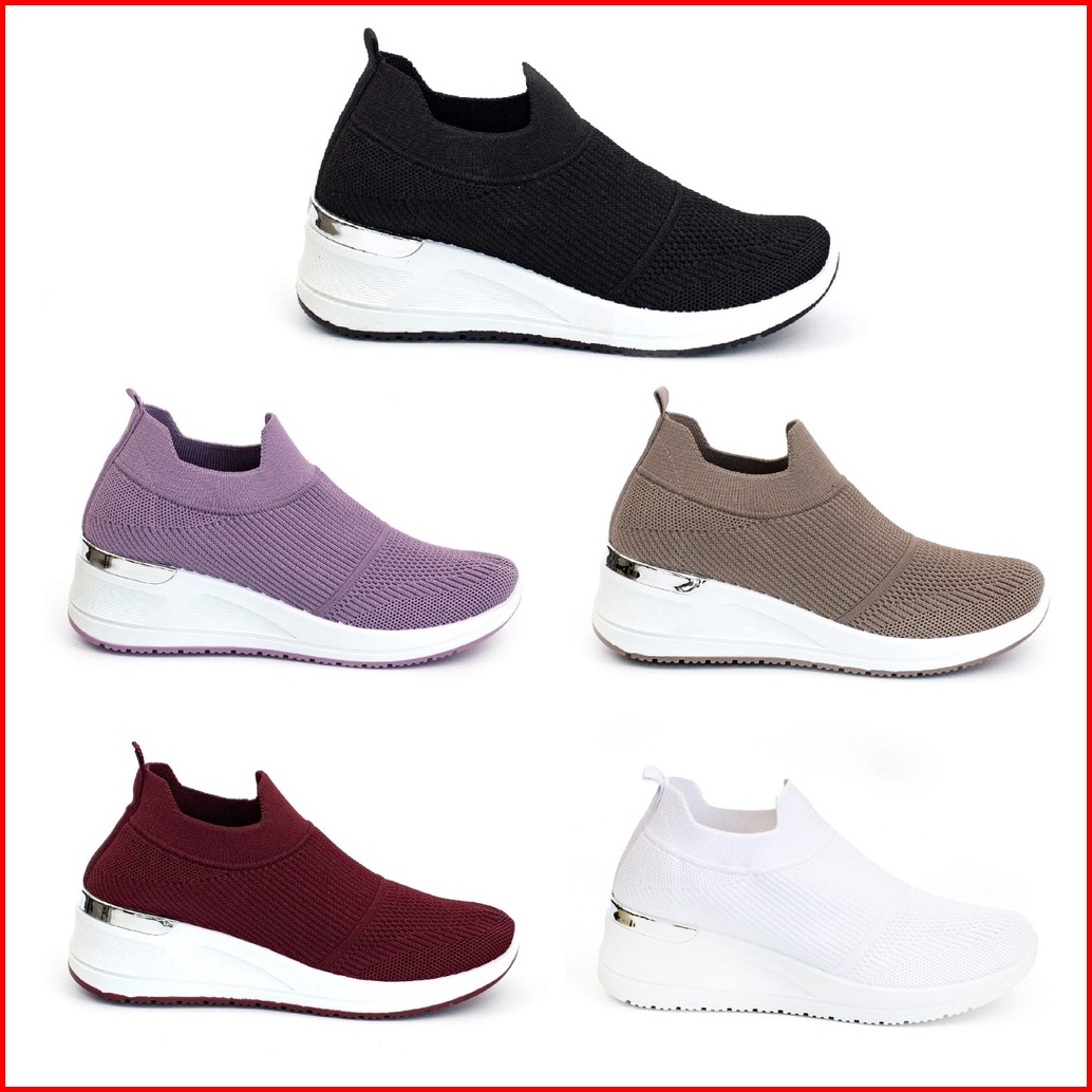 Sepatu Slip On Wanita Sport Tinggi Tanpa Tali Shoes Canvas Cewek Sepatu Model Hak Tinggi Tg8832