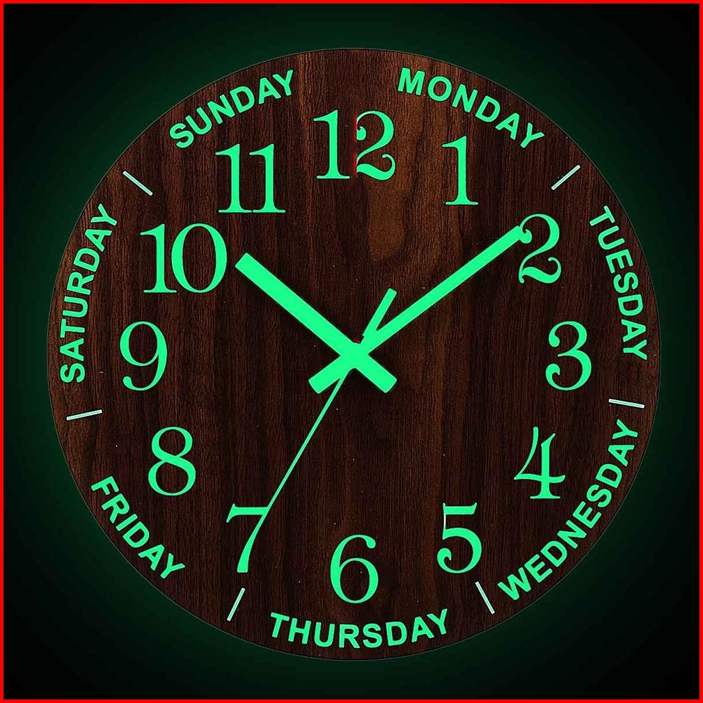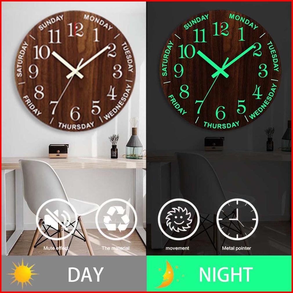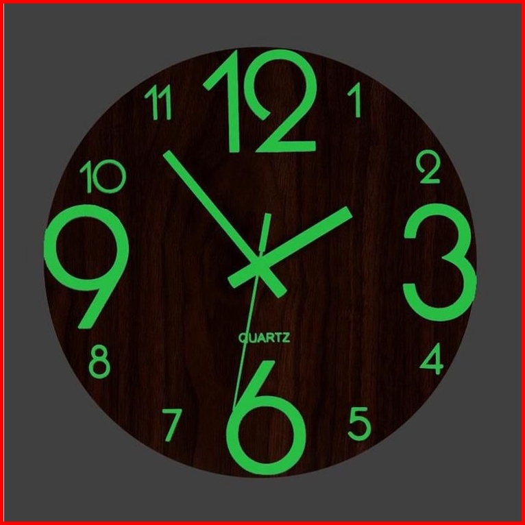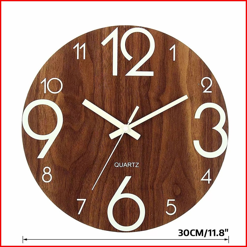 Jam Dinding Glow In The Dark Wooden Vintage Dinding Bulat Quartz Creative Design Luminous Nyala Menyala Dalam Gelap