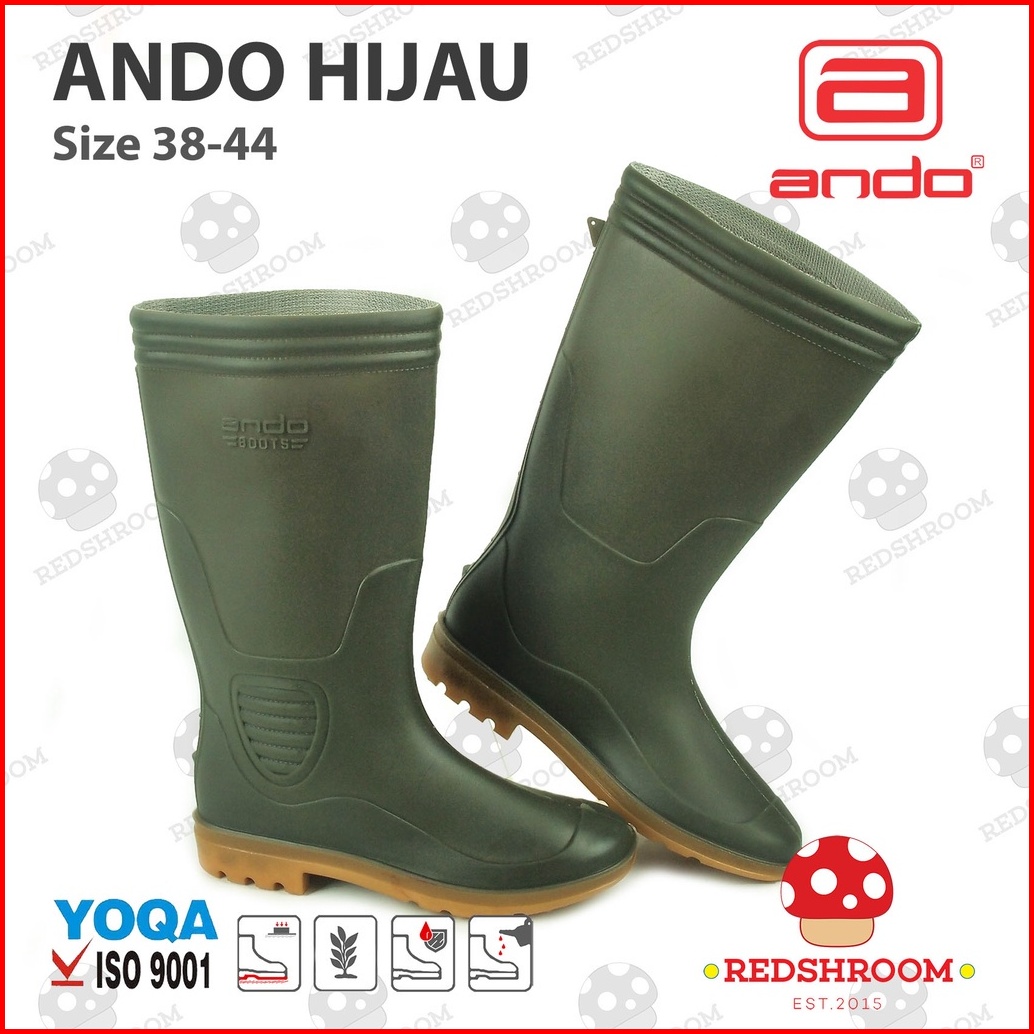 Sepatu Boot Tinggi Ando Hijau Boots Ringan Lentur Nyaman Anti Slip Air Karet Lokal Proyek Perkebunan